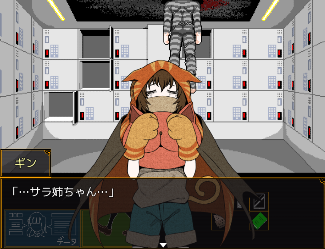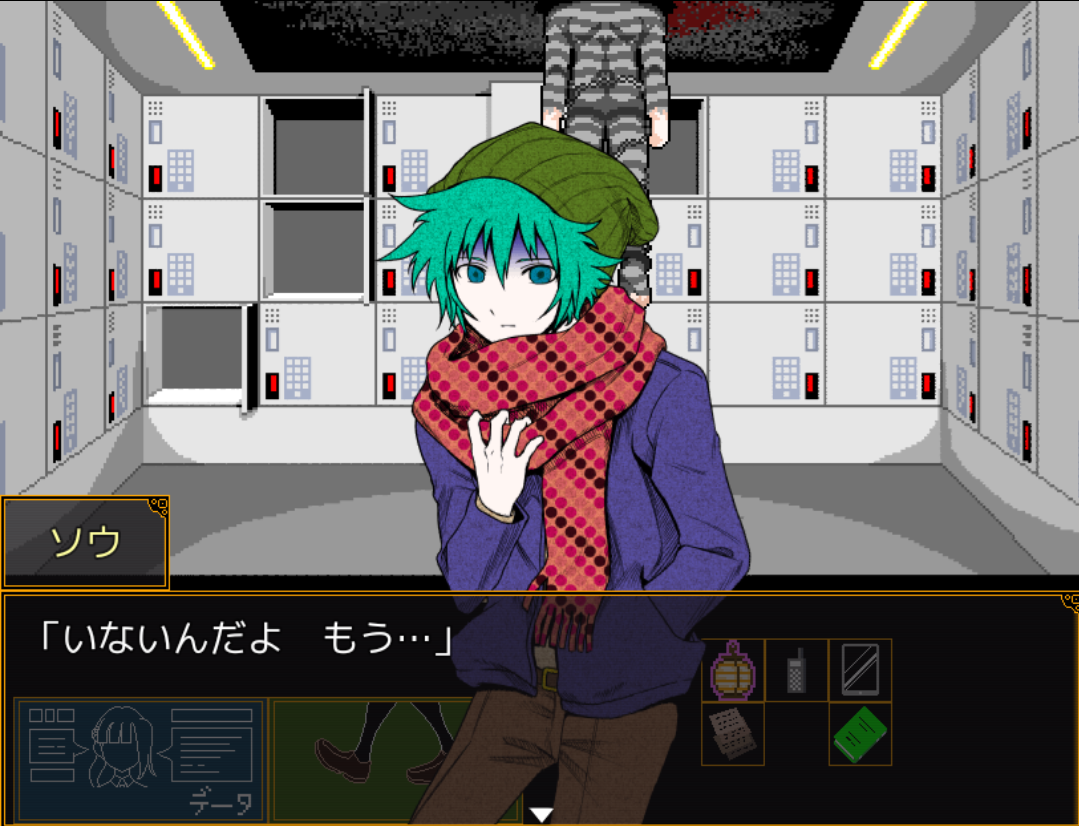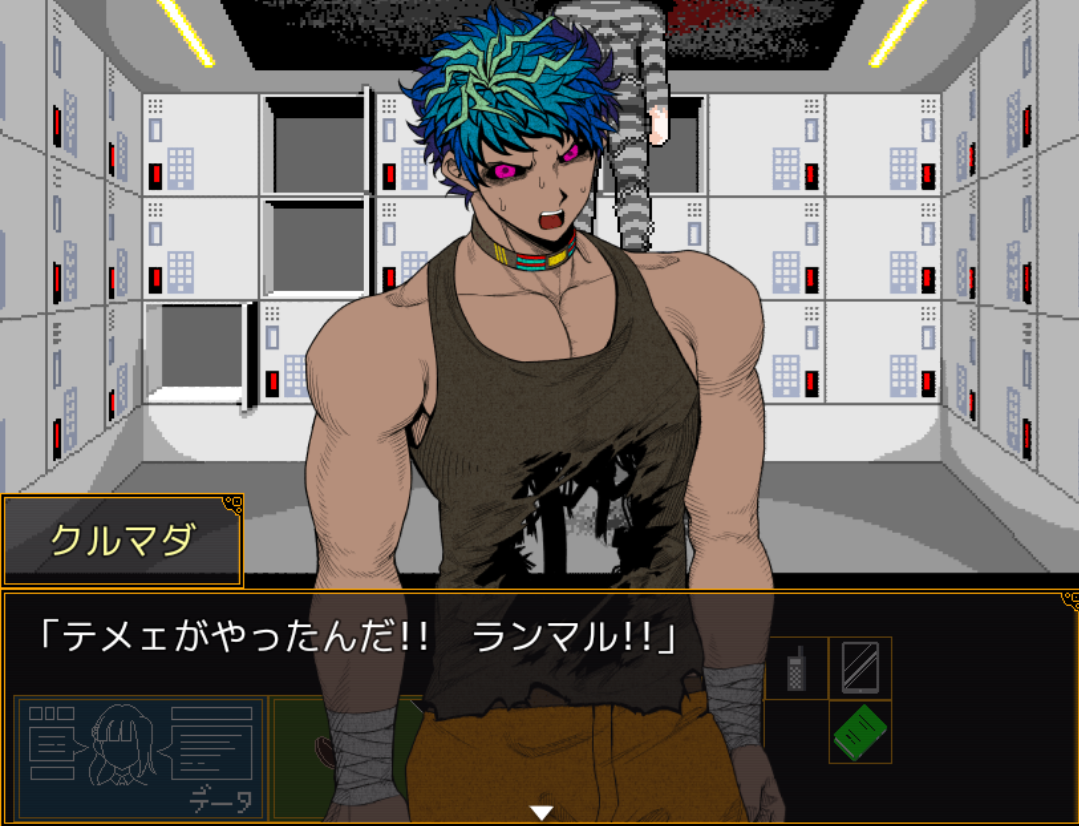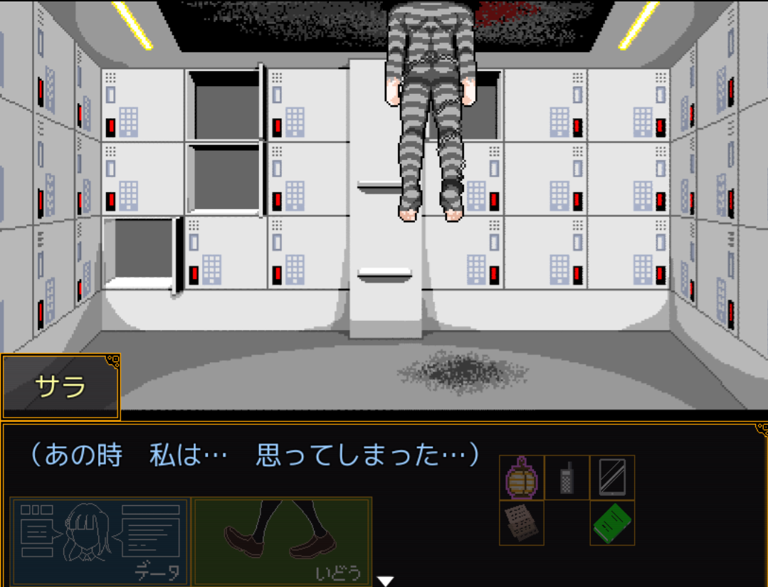 "이 녀석은 거짓 방송으로... 사라에게서 ID 카드를 빼앗은 후... 그 ID 카드를 사용해 제어실에서 교살의 함정을 발동시켰어...!! 로커룸에 혼자서 있던 아리스를 노리고...!!"