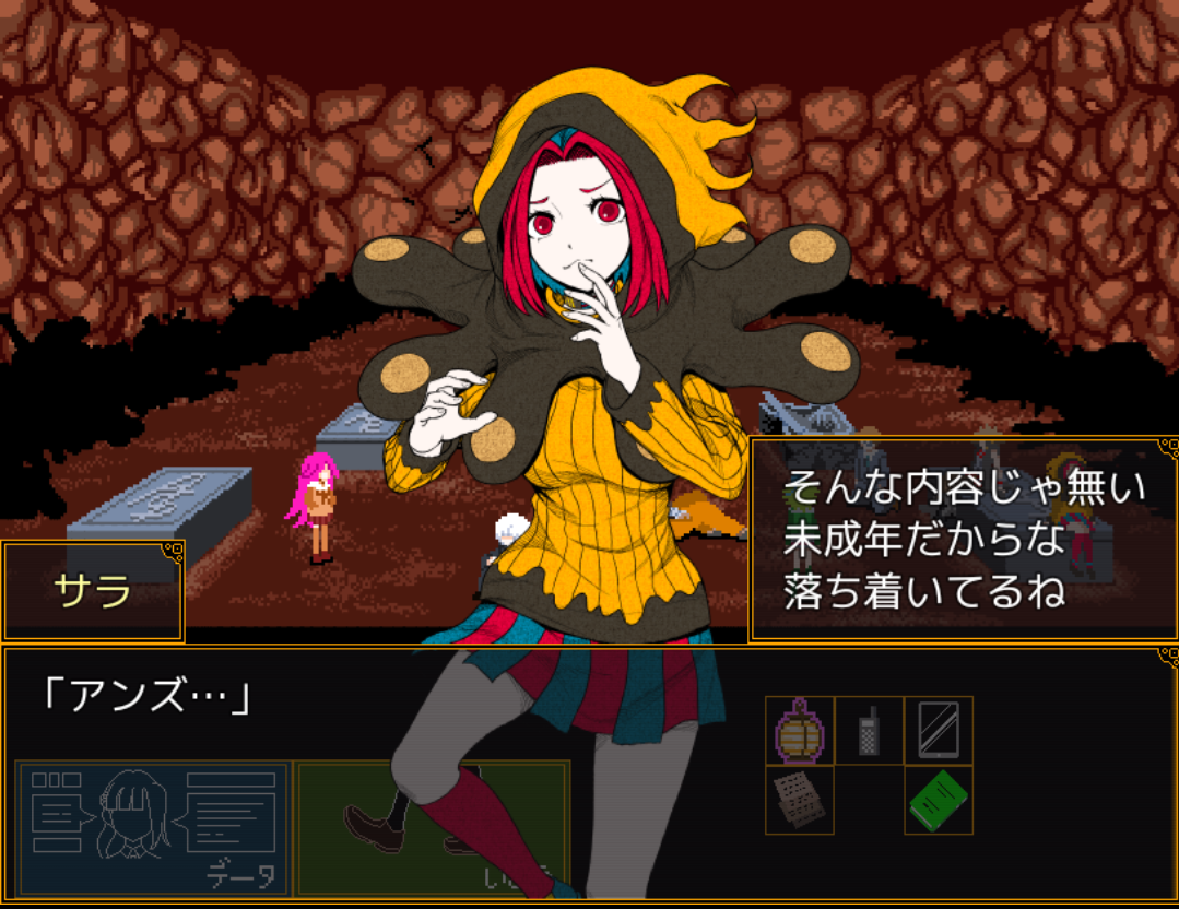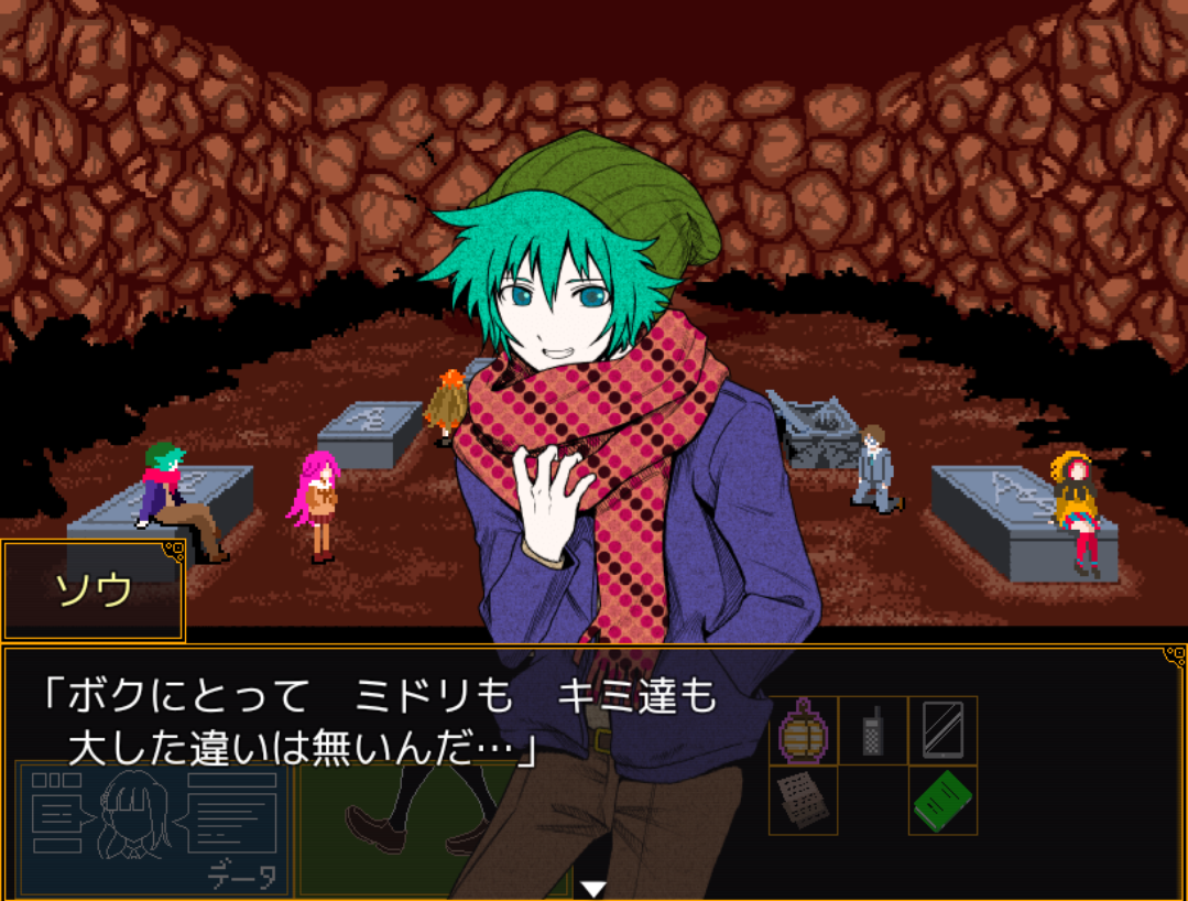Q타로 "기다려... 사라. 미도리에게 무엇을 들었는지는 모르겠지만... 우리들은, 사라를 믿는다. 우리들은... 모두가 크기는 달라도... 죄를 안고 있어..."