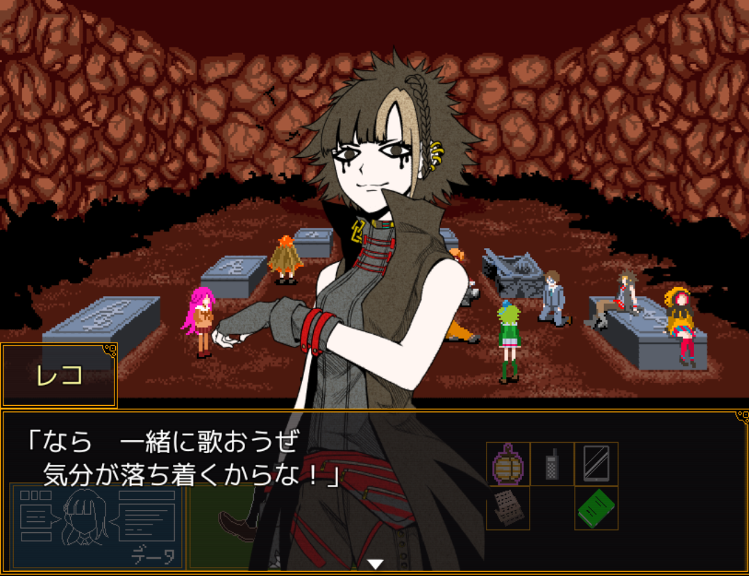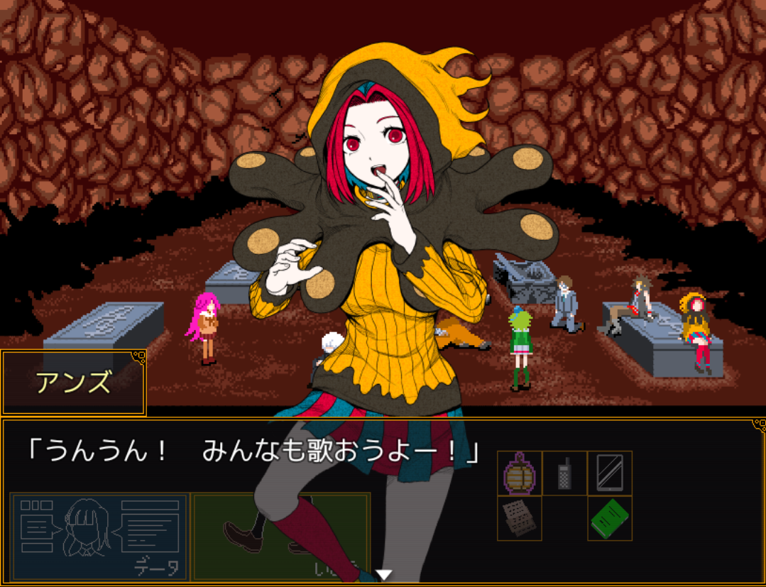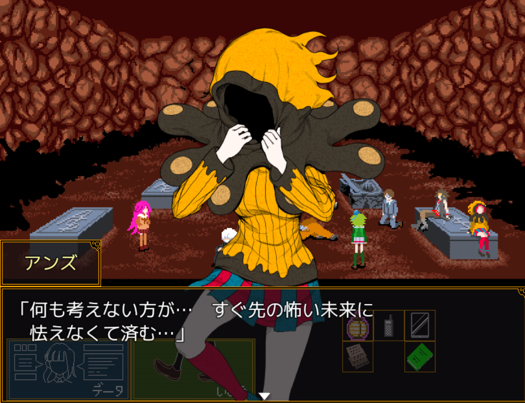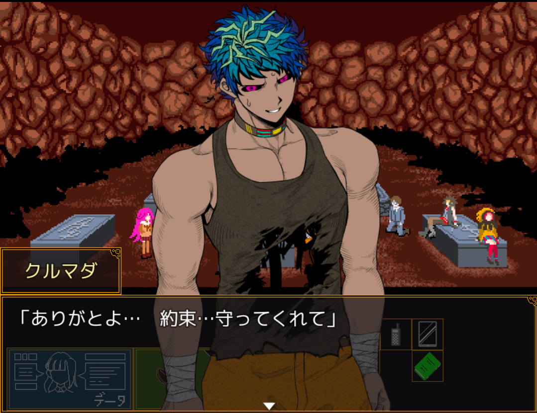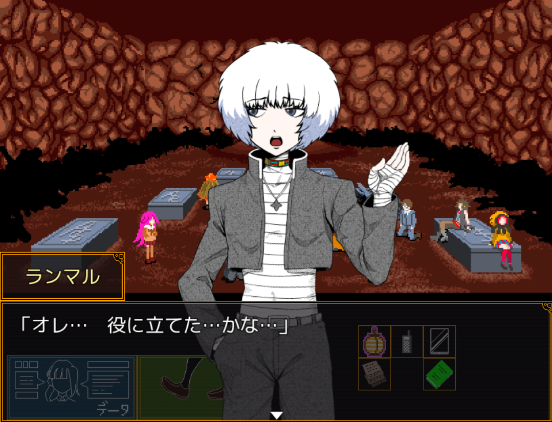7개의 관에 들어갈 사람을 골라야 하는 상황에서 란마루(소우 생존 루트에서는 쿠루마다)는 더미즈가 들어가겠다고 나선다