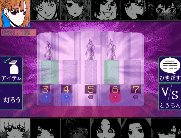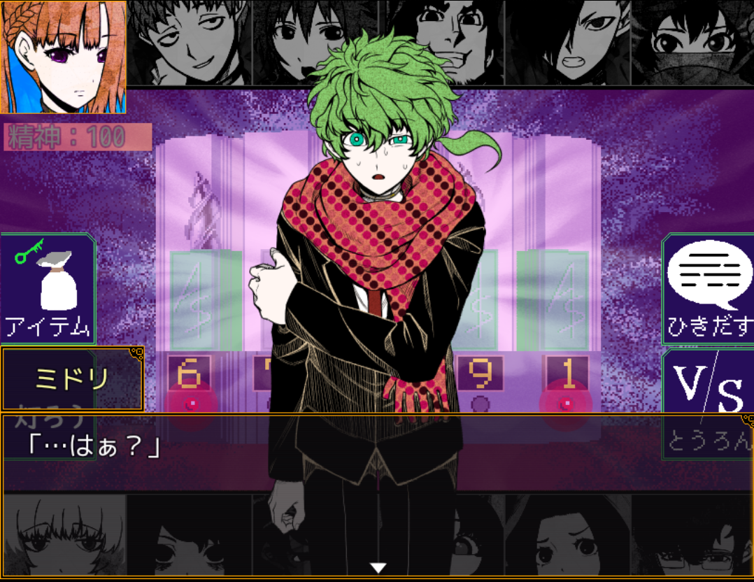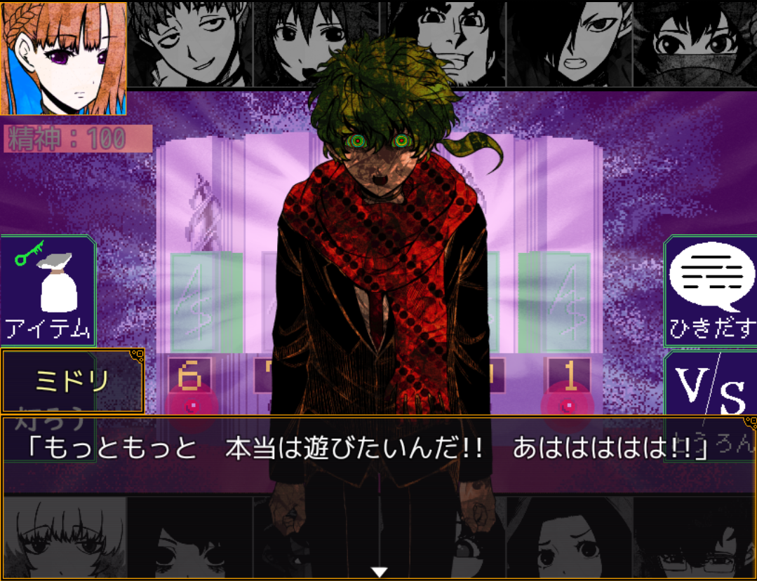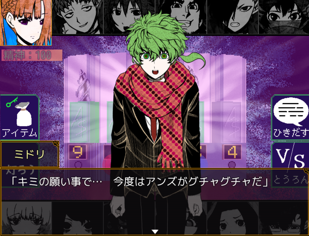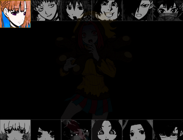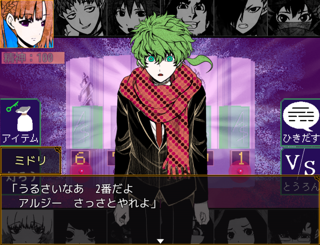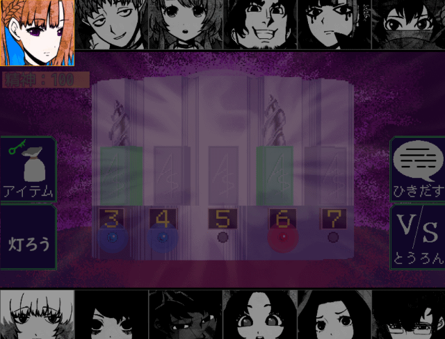 미도리 "...3대 있다고? 자... 봐 봐. 너는... 빛나지 않는 관 3대 중에서 나를 맞혀야 해. 그리고... 더이상 단서는... 없어. 그런가... 최후의 힌트를 쓸 수 있었네. 어느 쪽을 골라도... 적색이 나올 뿐이야. 힘껏 이야기 나눠 보라고..."