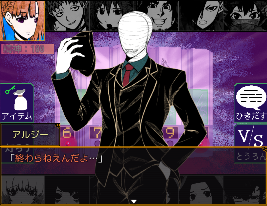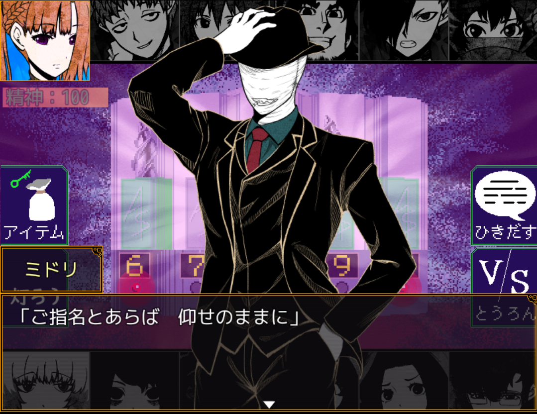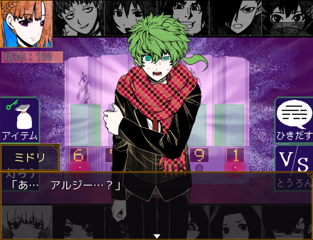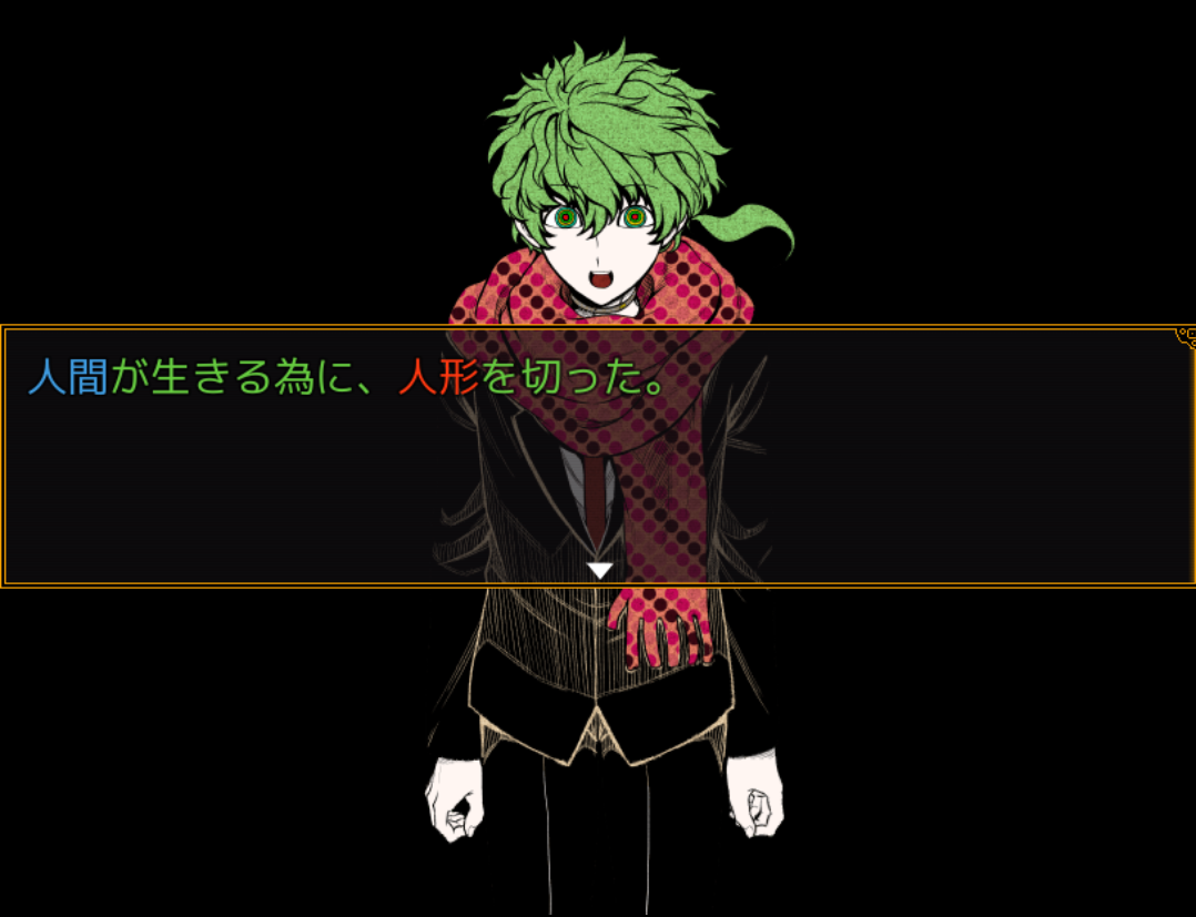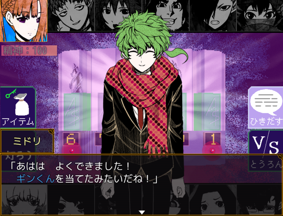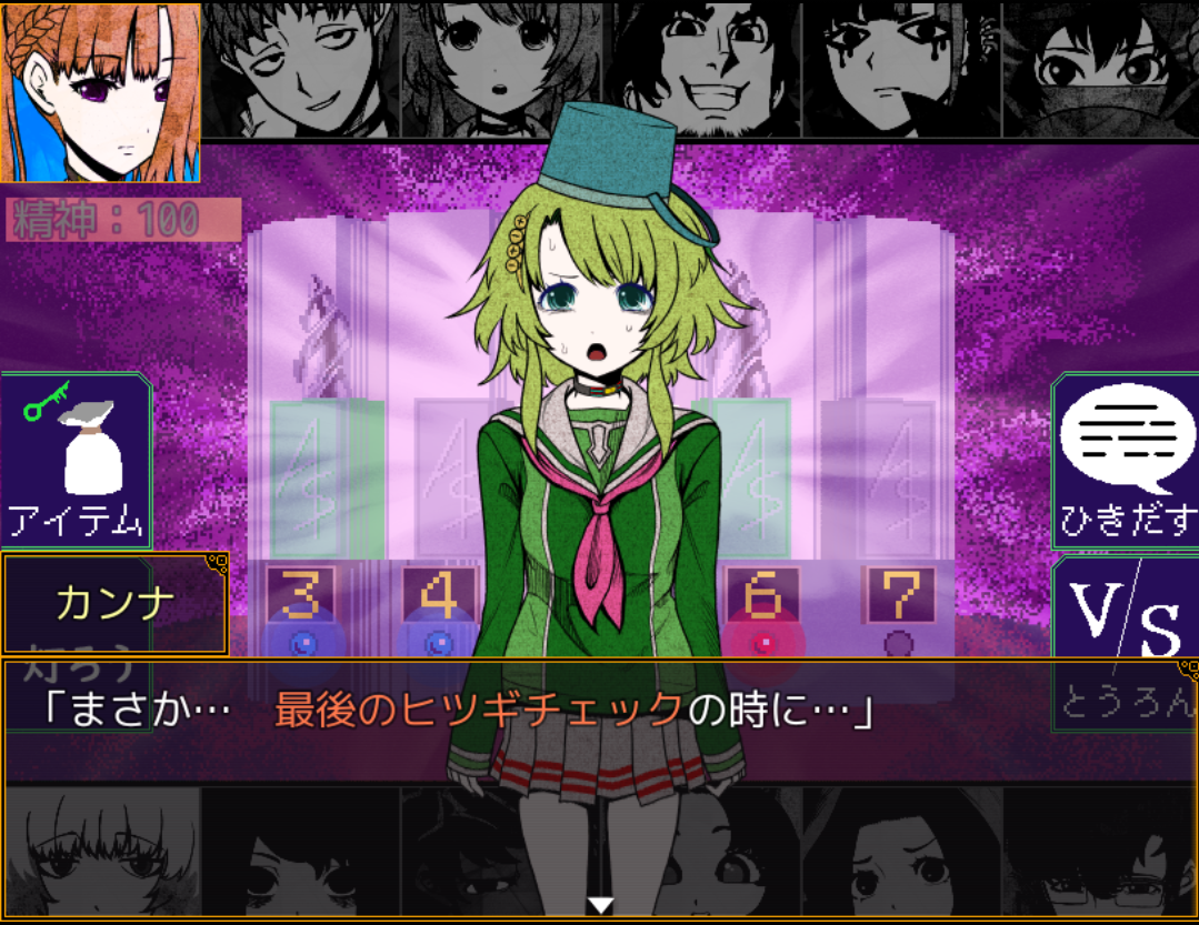 미도리 "...3대 있다고? 자... 봐 봐. 너는... 빛나지 않는 관 3대 중에서 나를 맞혀야 해. 그리고... 더이상 단서는... 없어. 그런가... 최후의 힌트를 쓸 수 있었네. 어느 쪽을 골라도... 적색이 나올 뿐이야. 힘껏 이야기 나눠 보라고..."