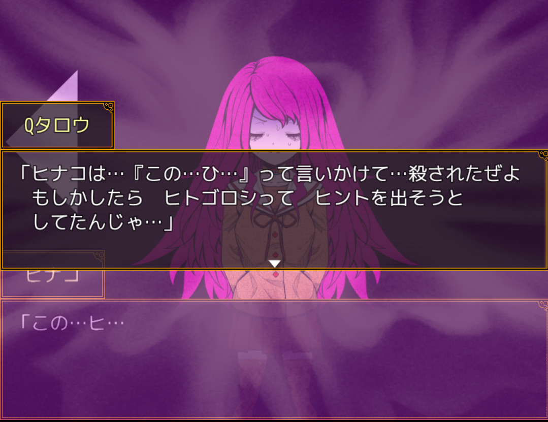 Q타로 "히나코는... '이... 히(ヒ)...' 라고 말하려다... 살해당했지. 혹시 살인자(히토고로시)라고 힌트를 주려고 한 게 아닐까..."