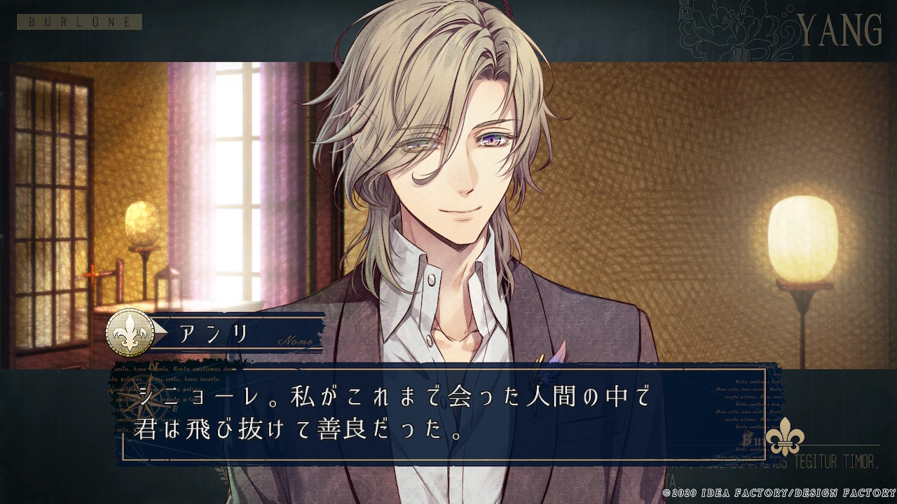 앙리 "시뇨레. 내가 지금까지 만났던 인간 중에서 너는 단연코 선량했어. 내가 무엇을 부탁하지 않아도, 분명 평화를 위해 움직여 줄 거라고 생각해. 그래...... 마을에서 잔학한 살인이 일어나고 있다고 들으면 안절부절못하겠지."