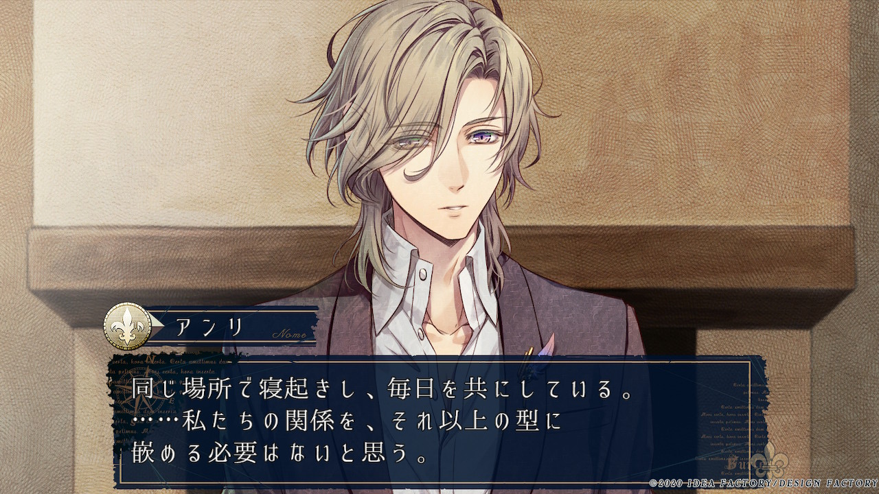 "그야...... 상처입고 괴로워하며, 복수를 바라는 당신은 정말이지, 단연코 아름다우니까요...! 평온한 나날에 만족하고 있는 앙리 같은 건, 아름답지도 않으면서 즐겁지도 않아. ......그러니까 저는 생각한 겁니다. 앞으로는, 제가 당신이 사는 목적이 되자고. 당신이 복수하고 싶어지도록."