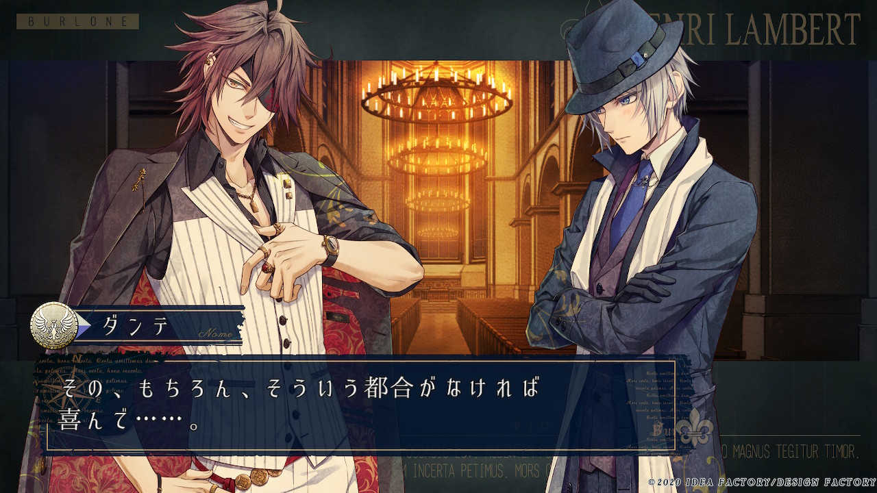 피오피오레의 만종 -Episodio 1926- 단테 감상 게임 전반적인 스포일러 o 스포일러를 포함한 다른 루트 후기는 ピオフィオーレの晩鐘 -Episodio1926- 피오피오레의 만종 -Episodio 1926- 길버트 감상 게임 전
