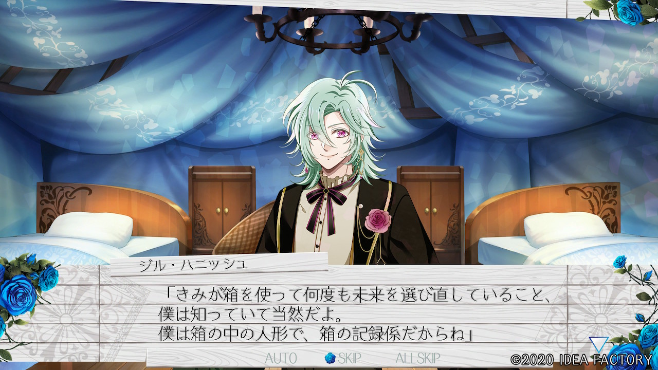 "네가 상자를 사용해서 몇 번이나 미래를 다시 선택하고 있는 것, 나는 알고 있는 게 당연해. 나는 상자 안의 인형에다, 상자의 기록계니까 말이야."