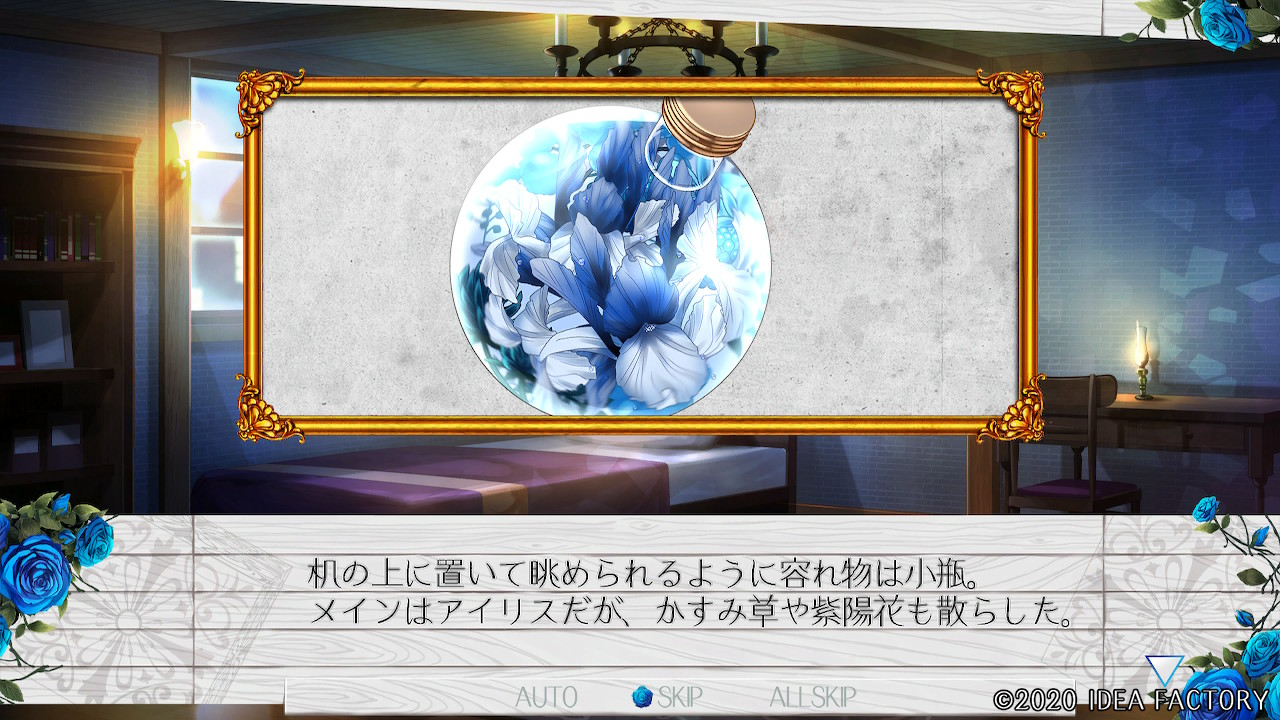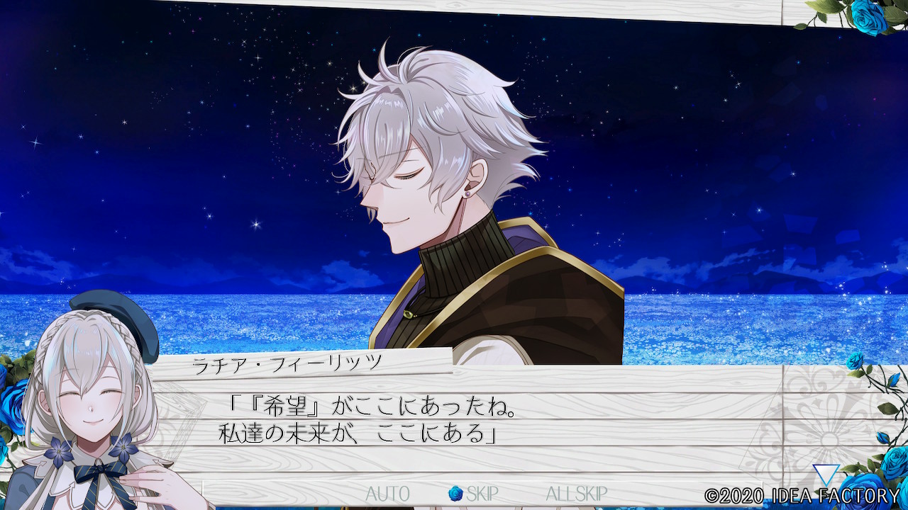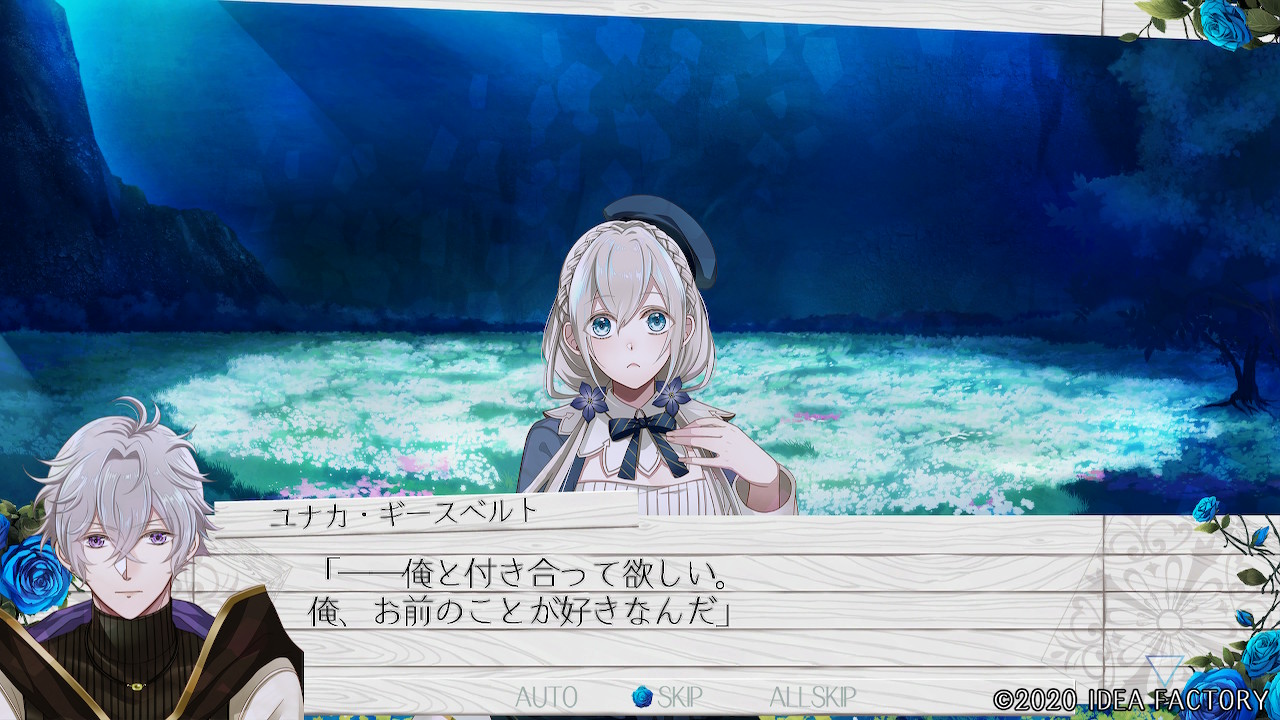 "푸른 장미의 꽃말은 '불가능'ー 존재하지 않는 것으로 불리는 듯해. 하지만 지금 이렇게 유나카가 푸른 꽃을 주었으니까. 그런 건 어찌되든 상관없어져 버렸어."