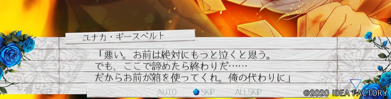 쿠아토 루트에서 하나밖에 존재하지 않는 상자를 유나카가 들고 있어서 의아했는데 지금까지 이렇게 건네준 거였냐고... 가넷이 상자 안 준다고 바로 유나카를 죽여버려서 황당했다
