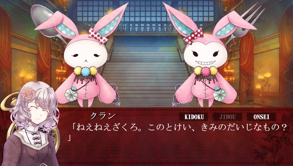 공통 루트 끝낸 감상으로는 이상한 나라의 앨리스의 매우 어두운 버전인 것 같기도...? 오프닝 곡 가사에서 꿈 얘기가 나오기도 하고 과자에 EAT ME! 문구가 보여서