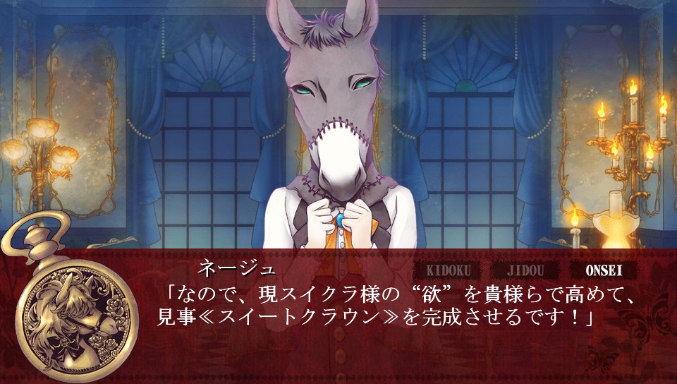 "그래서, 현재 스위트 크라운님의 "욕망"을 네 놈이 높여, 훌륭히 《스위트 크라운》을 완성시키는 겁니다!"