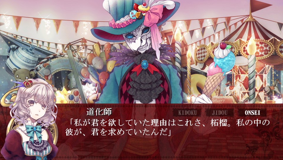 저기, 한 가지 사과하고 싶은 점이 있어. 12살 때, 나는 성에서 너만을 원래 세상으로 돌려보냈지만, 그건 나의 상냥함 같은 게 아니야. 너만이 혼자 살아남아서, 나를 희생했다고, 언제까지나 언제까지나 질질 끌었으면 했어. ......그 바람은, 반은 이루어졌으려나?