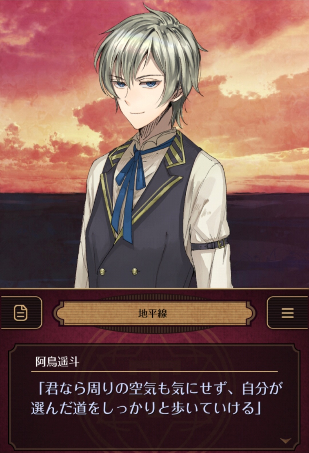 "네 미래는, 무한한 가능성이 펼쳐져 있어. 이건 내 감이지만... 분명 너는 거물이 되지 않으려나. 너라면 주변의 분위기를 신경쓰지 않고, 자신이 택한 길을 제대로 걸어갈 수 있을 거야."