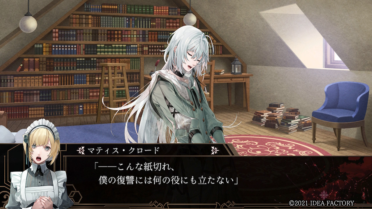 "ー이런 종잇조각, 내 복수엔 아무 도움이 안 돼. 나중에 전부, 버려 둬. ......책상 위를 점령하고 있으니까 무척 방해 돼."