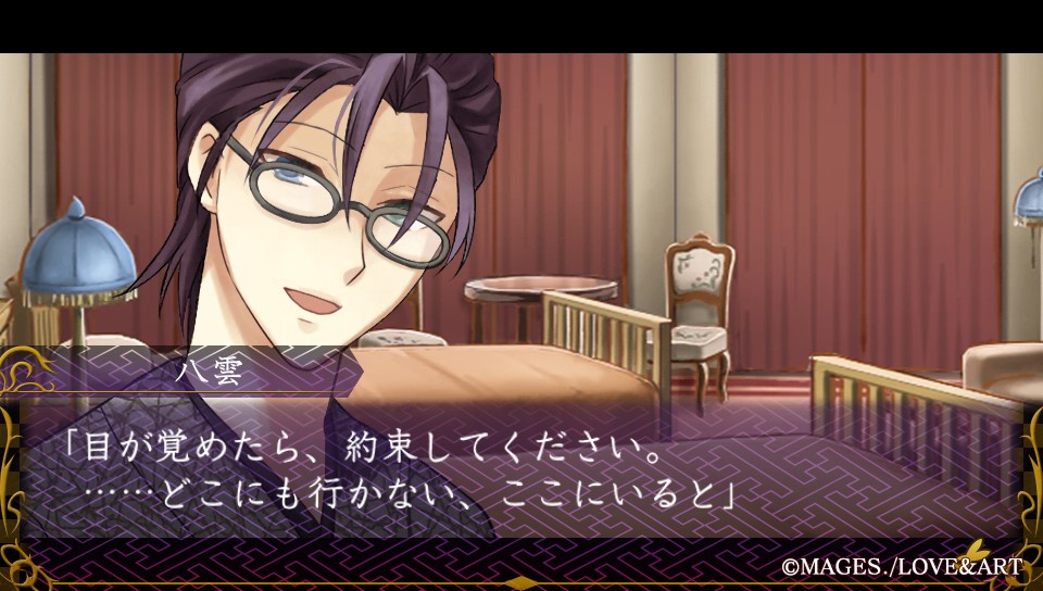 "저는 당신이 어떤 사람이라도 상관없어요. 타마요리든 아니든...... 사실은 어느쪽이든 상관없답니다. 저를, 사랑해 주시지 않으셔도 괜찮습니다. 연인이라 불러주지 않으셔도 상관없으니까...... 눈을 뜬다면, 약속해 주세요. ......어디에도 가지 않겠다고, 이곳에 있겠다고."