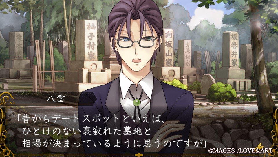 "옛날부터 데이트 스팟이라고 하면 인기척이 없는 적막한 묘지라는 게 당연하다고 생각합니다만."