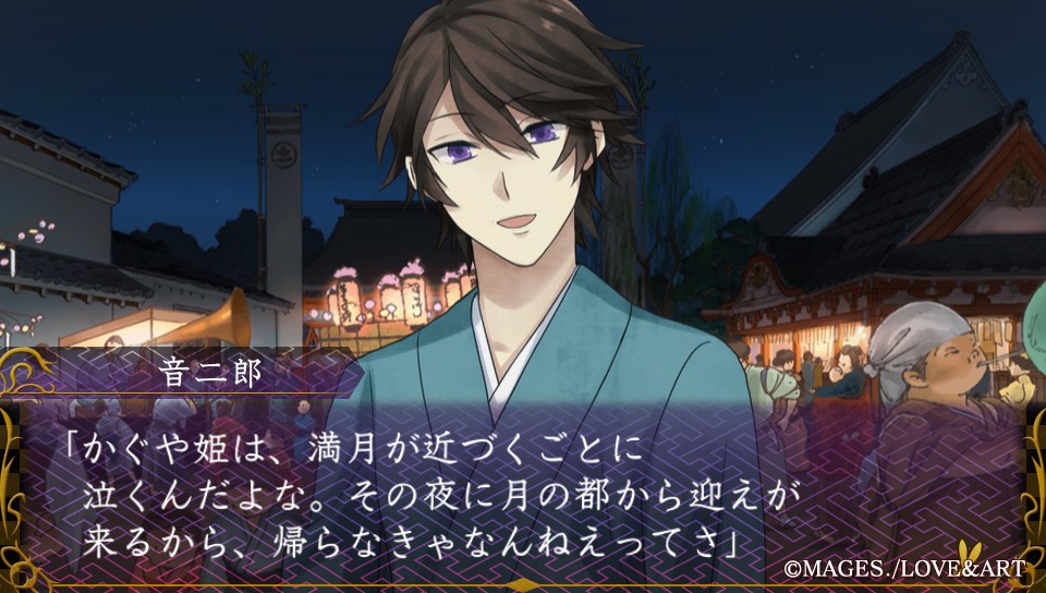 "카구야히메는, 만월이 가까워질 때마다 울지. 그 날 밤에 달의 나라에서 마중을 오니까, 돌아가야 한다고."