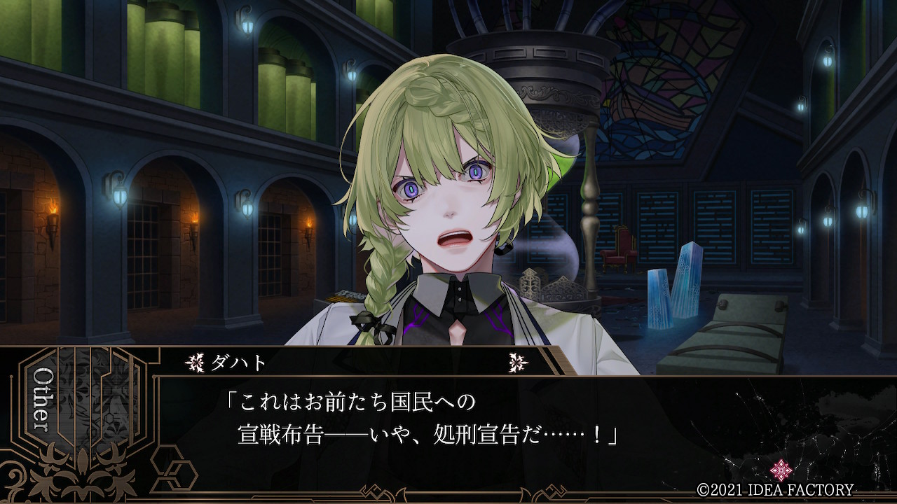 "ー그래. 내가 경애했던 여왕은 지금 막, 이 나라의 죽음에 독살당했다. 자신의 신념을 잊고, 국민을 다룰 신념을 방기하고, 느긋하게 나라를 방치한 벌로써ー 시스터 살로메. 너의 죄도, 내가 심판하도록 하지."
