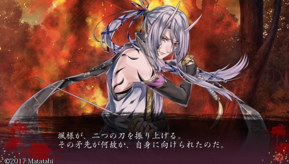 "타마미야 가는 마을을 빠져나간 후에 있어. 너희들 인간은 눈에 띄니까, 오니인 모두들에게 주목받겠지만, 참아줘. ......뭐, 나 한 명으로도, 비슷하겠지만."