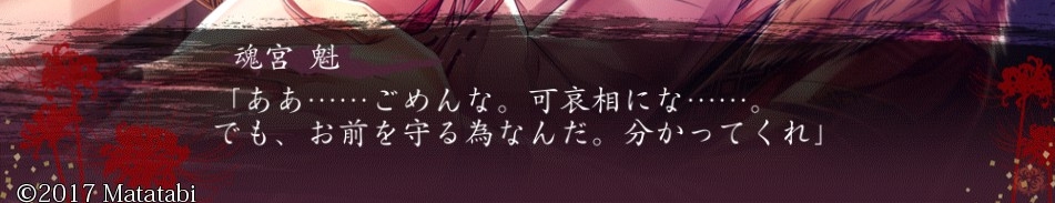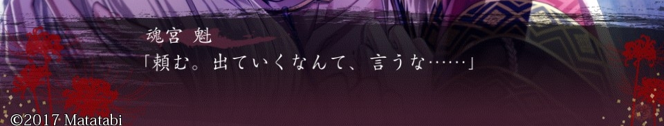 "가지 마...... 가지 말아줘...... 무서워...... 네가 이곳을 나간다면, 두 번 다시 돌아오지 않을 느낌이 들어서..... 부탁할게. 나간다고, 말하지 마......"