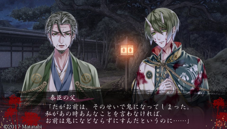 "그러니 나는, 같은 노선은 밟지 않겠다고 너에게 엄격하게 해왔다. 하지만 너는, 그 때문에 오니가 되고 말았어. 내가 그 때 그런 말을 하지 않았더라면, 너는 오니 따위 되지 않았을 텐데....."