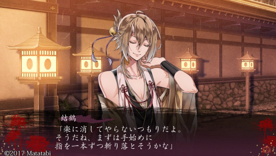 "그 요마, 죽이지 않아 주었으면 좋겠네. 편하게 없애지 않을 생각이야. 그렇네, 먼저 처음에 손가락을 하나씩 절단할까나. 그것이 끝나면, 이번에는 천천히 사지를 절단하는 거야. 급소를 빗맞혀 썰어내면, 이번엔 눈알을 짓누르고 얼굴 뼈를 부러뜨려서ー 요마로서 이 세상에 돌아온 것을 후회하게 해 줄 거야."