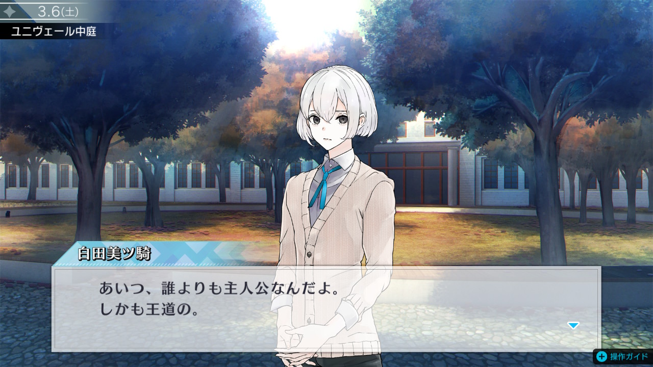 스즈가 확실히 키사와 함께 주인공이구나. 왕도적인 스토리 전개도 그렇고, 시로타나 네지가 스즈를 키사와 동급으로 평가하고 있어 파트너 느낌이 물씬 난다. 함께 성장하는 느낌이라 소년 만화적이라고 생각하기도 했고. 열혈 타입이지만 신중해서 키사에게 자기의 감정을 밀어붙이지 않고 다가오기를 기다려주었다는 게 멋있었다. 스즈가 첫 공략캐로 무난하지 않을까 싶어서 택했는데 생각보다 스즈의 성격이 입체적이라 더욱 즐길 수 있었던 것 같다
