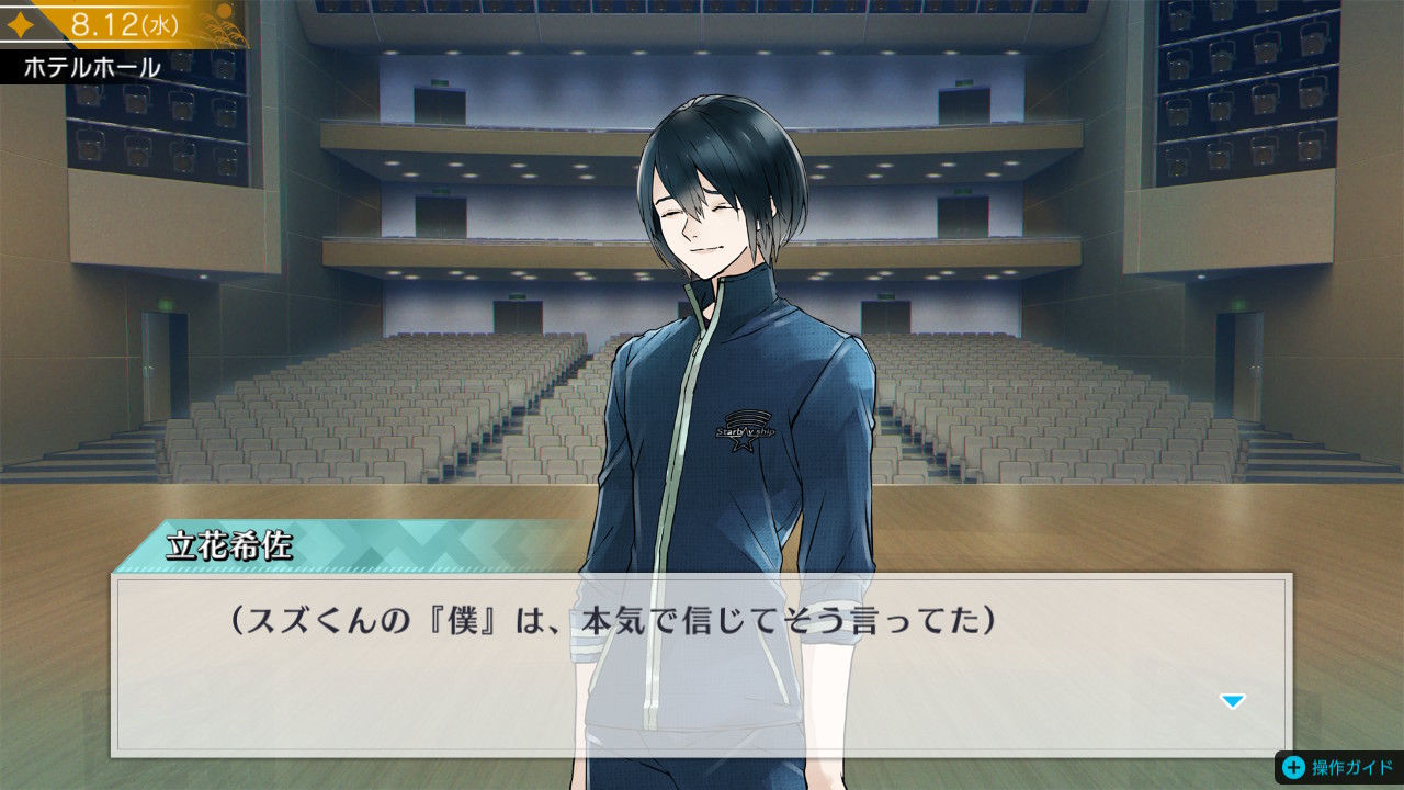 스즈와 소우가 스토리를 해석하는 방식에서 각자의 성향이 드러난 느낌이었다. 꿈에 대해 희망을 품고 직진하는 스즈와, 키사와 무대에서 나란히 서고 싶었지만 현실에 좌절한 소우. 스즈 루트에서 자꾸 소우가 눈에 밟혀... 키사나 스즈처럼 재능이 받쳐주면서 내면도 강하기가 어렵잖아. 소우가 두 사람의 그늘에 갇혀있는 느낌이라 가슴이 답답해진다