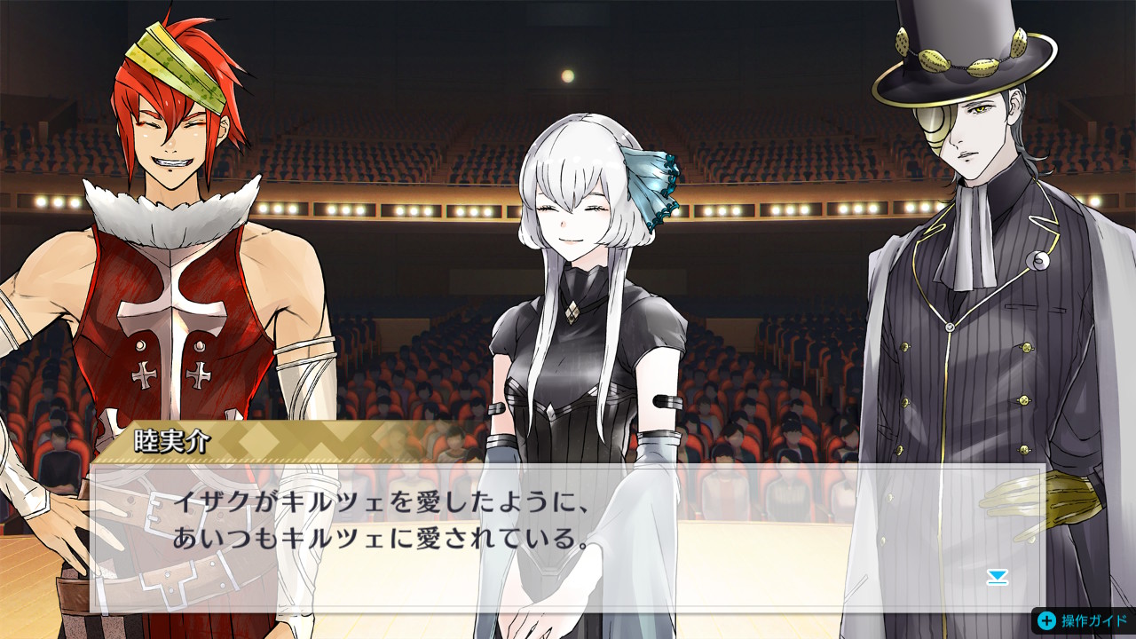 여름 공연에서 잭을 맡게 된 키사. 로드나이트에겐 쟌느가 많으니 성립되고, 오니키스에겐 잭을 하는 데 시간 쓰는 것이 아깝다는 이야기를 듣고 분하다고 속마음을 털어놓는다