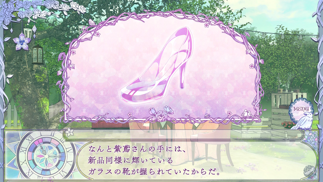 "사실은 말이야. 옛날, 그 구두 가게에 장식되어 있던 유리 구두를 여자 아이가 반짝반짝하는 눈으로 보고 있는 걸 우연히 지났던 적이 있었어. 겨우 만났구나, 나의 신데렐라."
