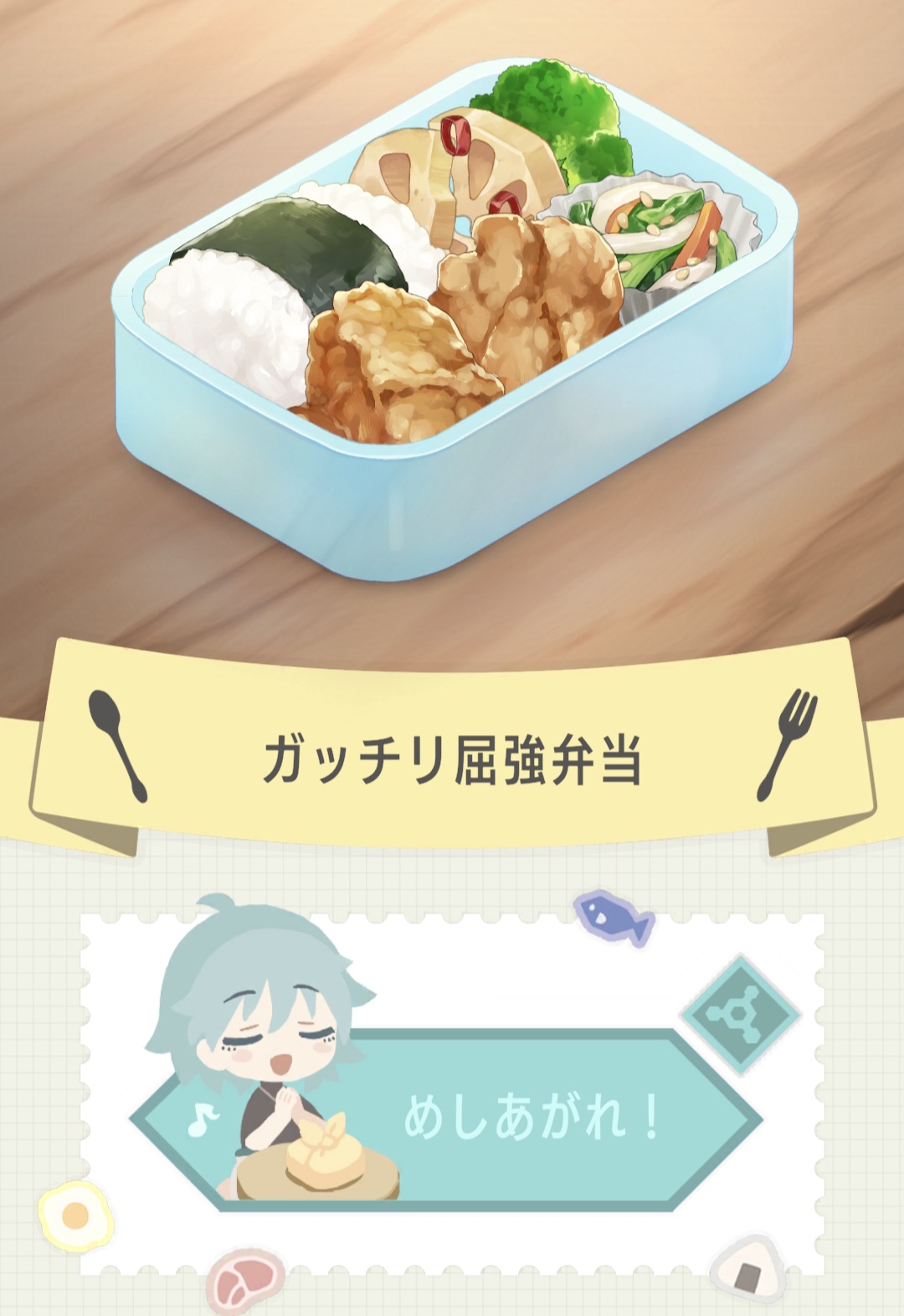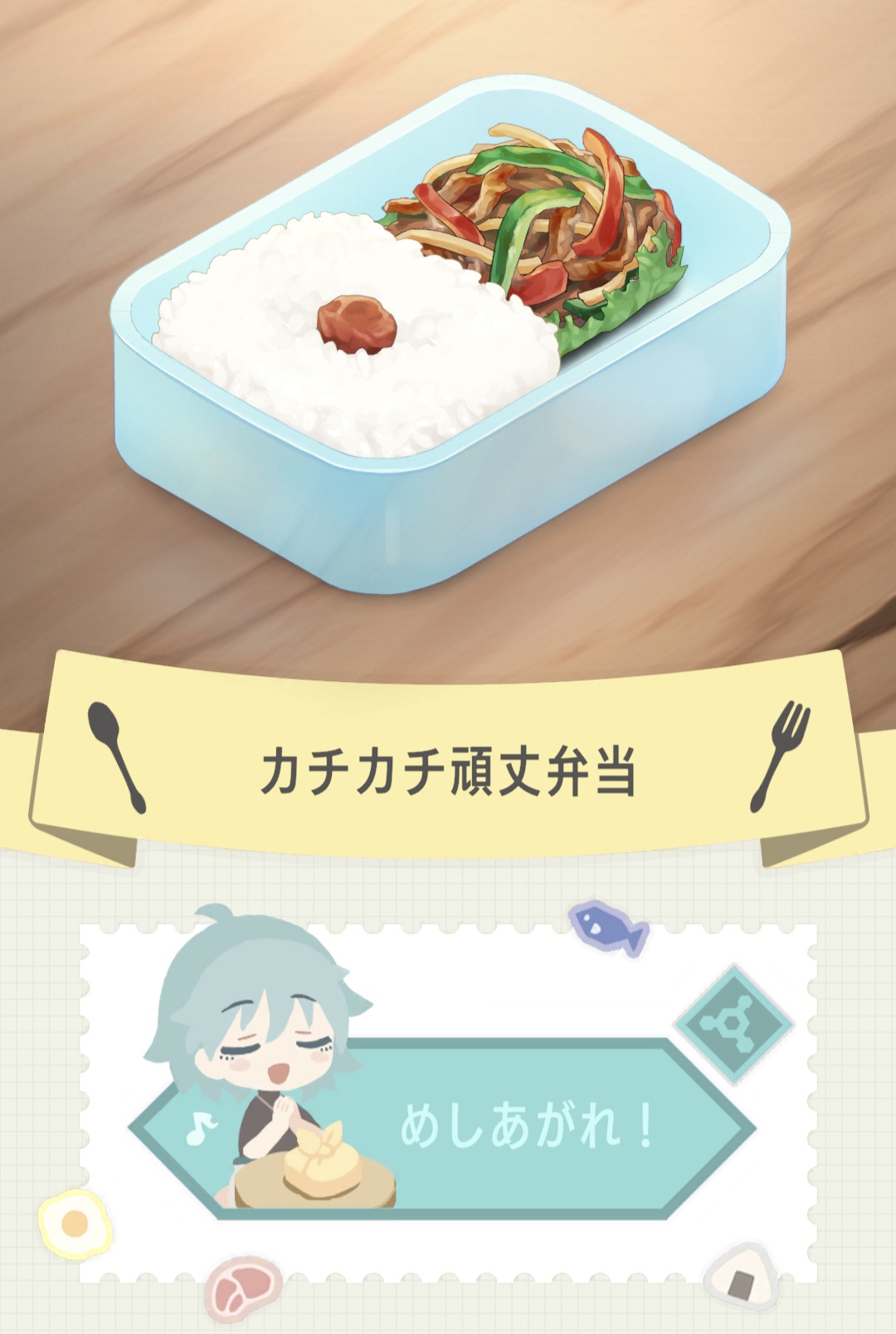도시락의 재료에 따라 능력치(힘/현명함/체력)가 상승
