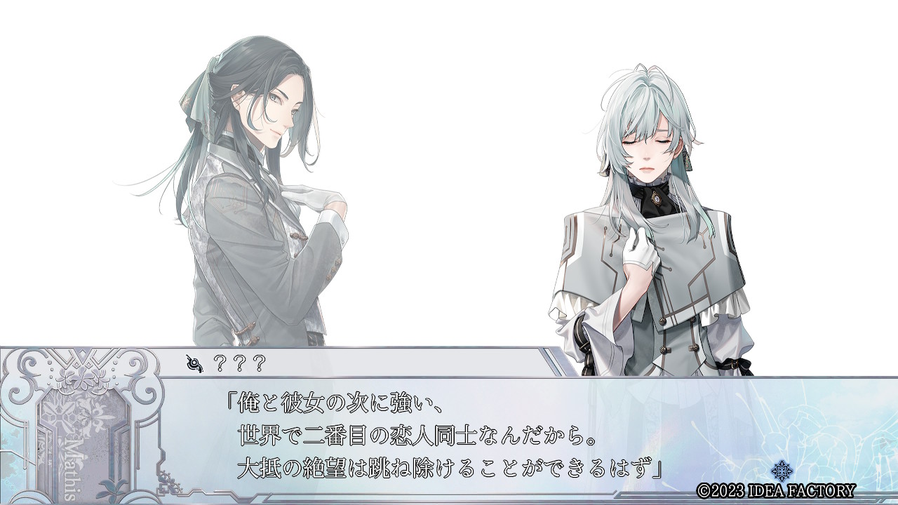 ??? "............당연하지. 뭐라고 해도 너희들은ㅡ 나와 그녀 다음으로 강한, 세상에서 두 번째 연인이니까. 대부분의 절망은 뿌리칠 수 있을 터. ㅡ다녀와, 마티스 클로드. 미래로 향하기 위한 고백을ㅡ 그녀는 분명, 기다리고 있어."
