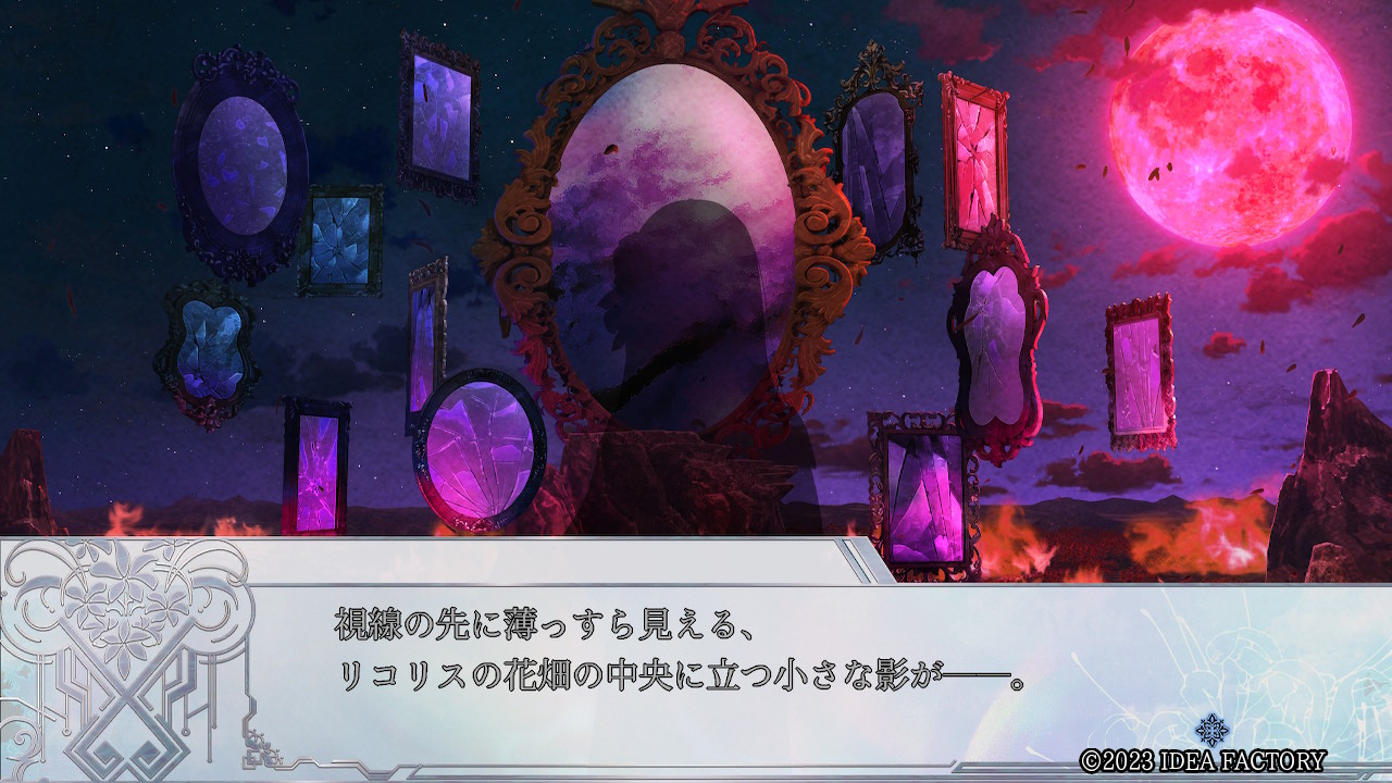리코리스 꽃밭에서, 닿는 것만으로 고통을 동반하는 꽃보라가 춤춘다. 고통에 신음하면서도...... 우리들은 그 장소에서 도망치지는 않았다. ㅡ이것은, 우리들에게 내려진 심판. 그 꽃보라에, 몇십 년, 몇백 년 계속 불타면서ㅡ 우리들은, 죄를 속죄하게 될 것이다.