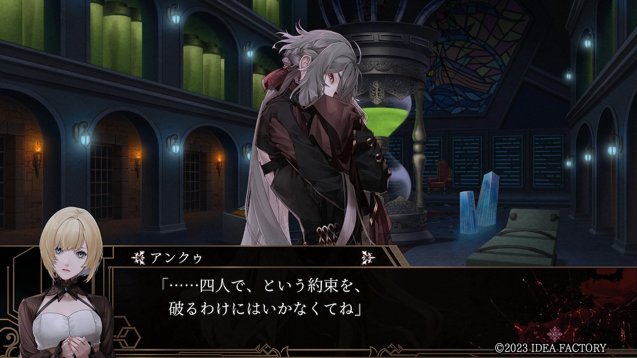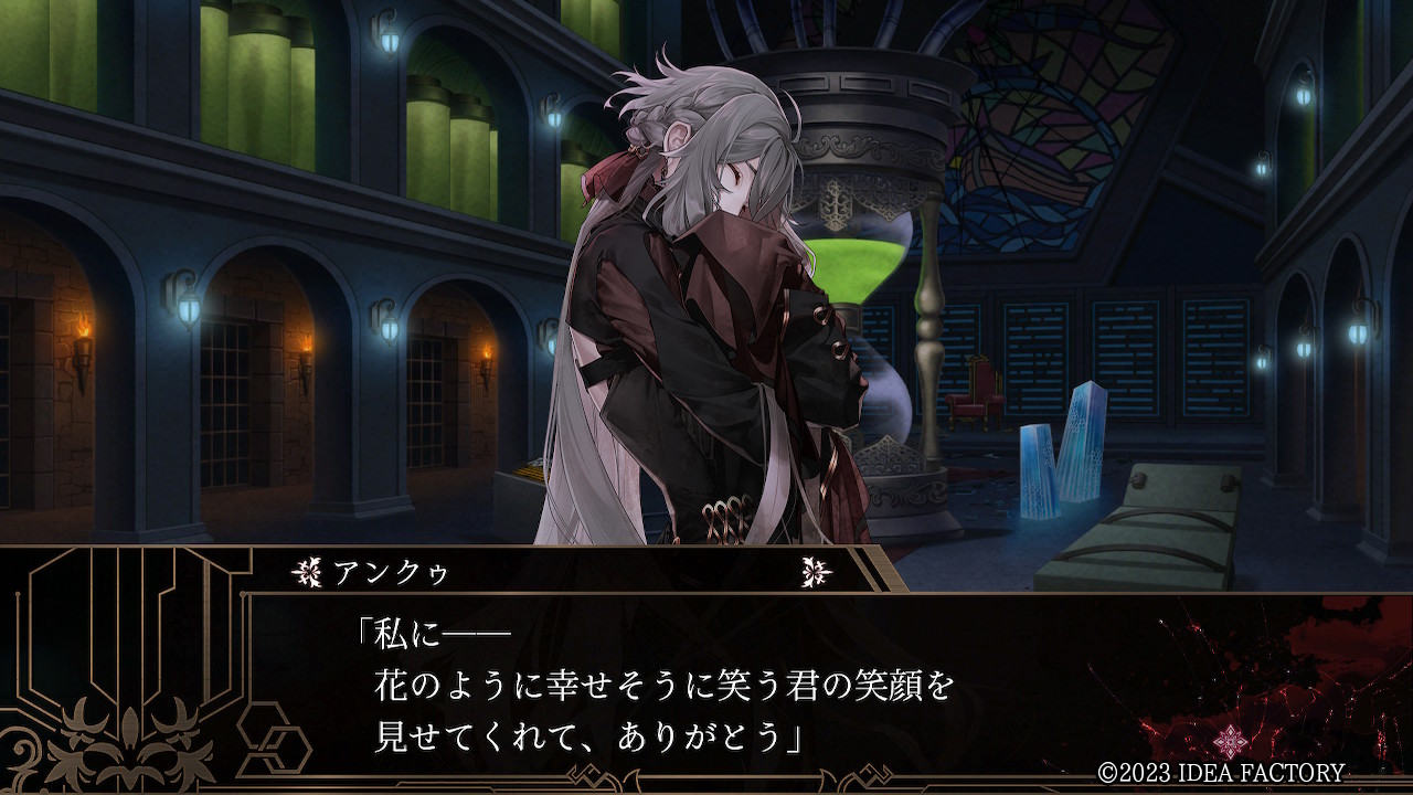 그래서 빠져나와버렸어. '내' 기억 안에 있는, 바깥 세상을ㅡ 내 자신의 눈으로 보고 싶어서. ㅡ괜찮다면 너도, 함께 도망치지 않을래? 그야, 목적은 같잖아? ......갈 곳은 없고. 혹시 목숨을 건 도망이 될지도 모르지만ㅡ 적어도. 이곳에서 단지 소비되는 것을 기다리는 것보다는, 오래 살 거라 생각해.