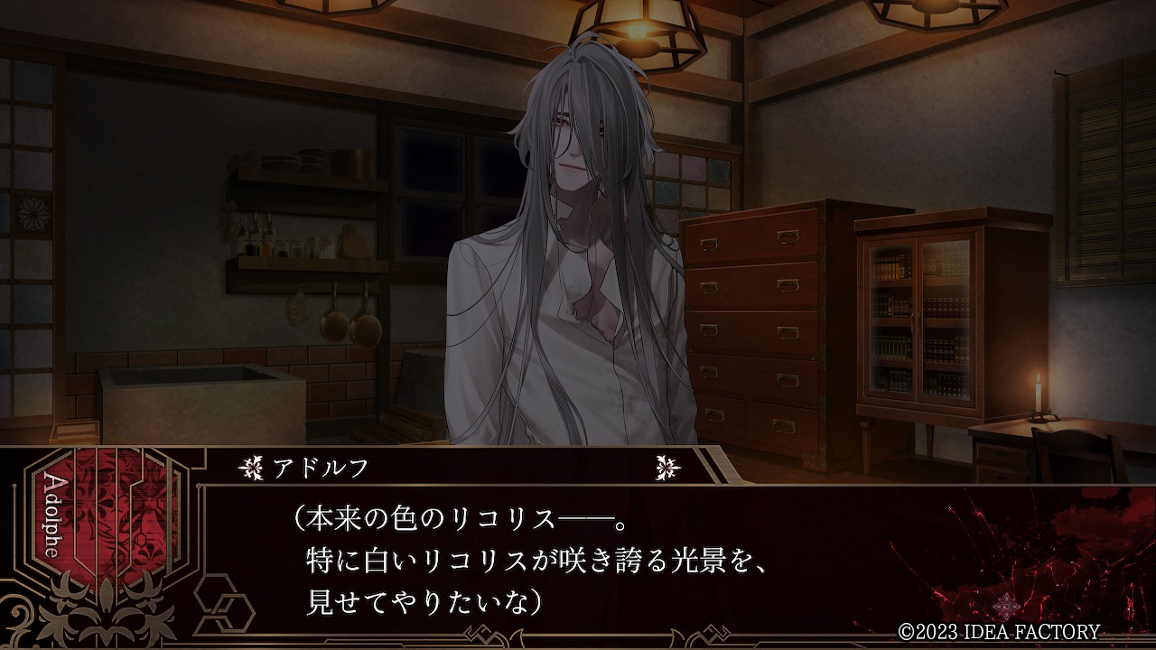 아돌프 "......본심을 말하면, 이대로의 형태로 남겨두고 싶어. 하지만 앞으로, 당신의 계획대로 일을 진행시킨다면ㅡ 나는 '죽음의 문지기'가 되어. 두 번 다시 '아돌프'로서, 그 녀석에 다가갈 수 없게 된다...... ㅡ그렇다면. 스스로와 결별하기 위해서라도, 당신에게 그것을 맡기고 싶어."