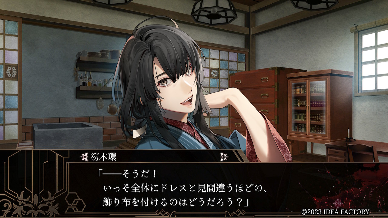 "ㅡ그래! 차라리 전체에 드레스와 착각할 정도의, 장식을 붙이는 건 어때? 완성 예상도는, 연인인 그녀를 '공주'로 불러, 감미롭게 유혹하는 사신을 상기시키는 복장ㅡ 좋아, 검은 레이스도 추가하자! 거기다 머리 장식이랑...... 아, 조홍도 필요하려나?"