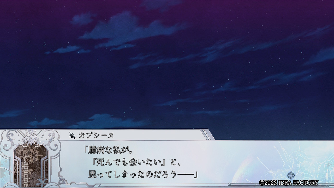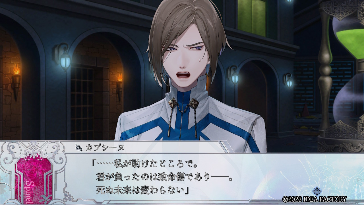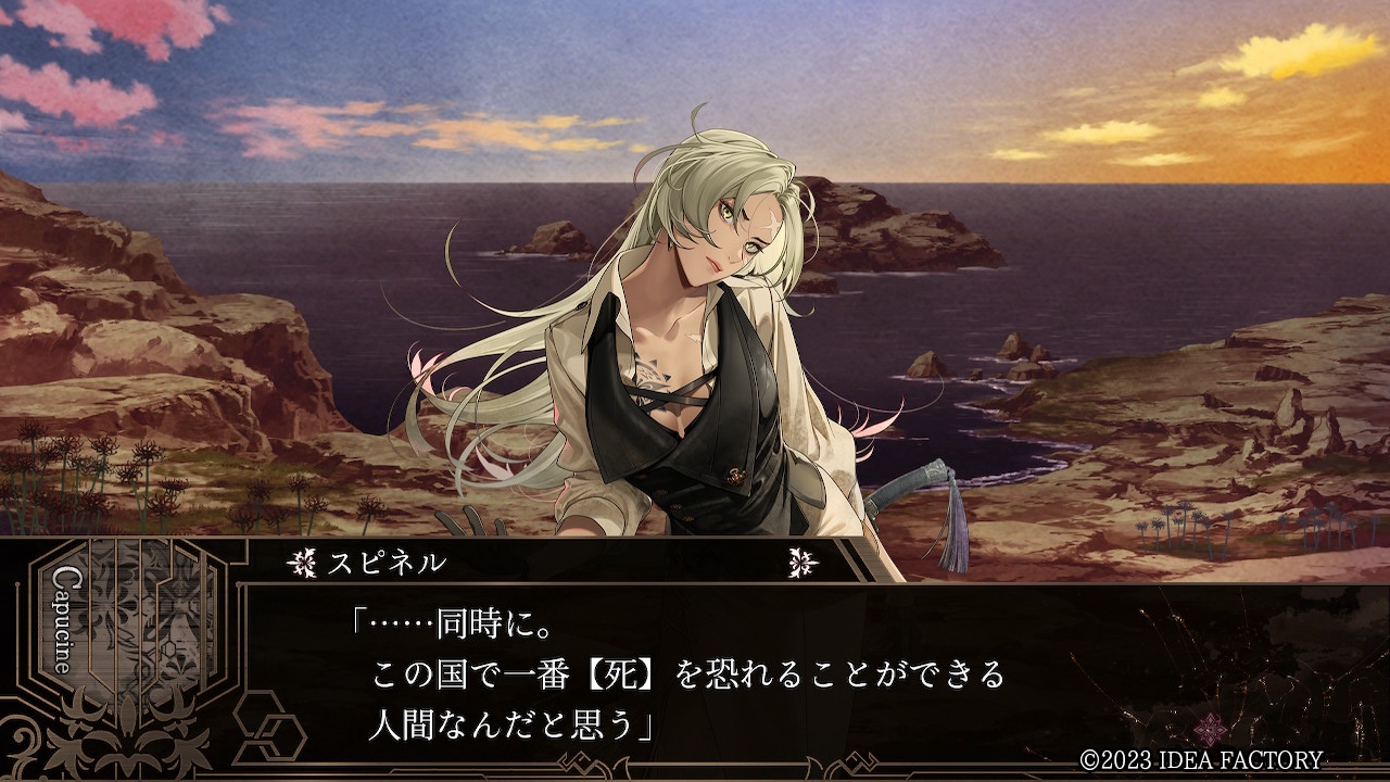 지금부터 죽겠지만. 이미 퇴로는 끊겼어. ......어이없군. 네가 여기까지 할 이유 같은 건, 정말 없었다고. 이곳은 사신에게 매료된 나라, 아르페셸ㅡ 평범한 인간인 너에게, 가장 무관계한 나라니까.