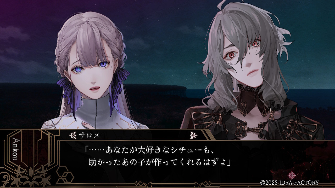 ......후후. 왠지 다정한 의식이네요. 저도, 안쿠에게 맹세할게요. 반드시 계약을 다하고, 당신의 소망ㅡ 삶을 이루겠다고. ......그러니. 나의 영혼이 무사히 인간이 되어도. 가끔이라도 좋으니까...... 만나러 와 주겠다고, 약속해 줄래요? ......그러면 저, 힘내서 살아가려고 해요.
