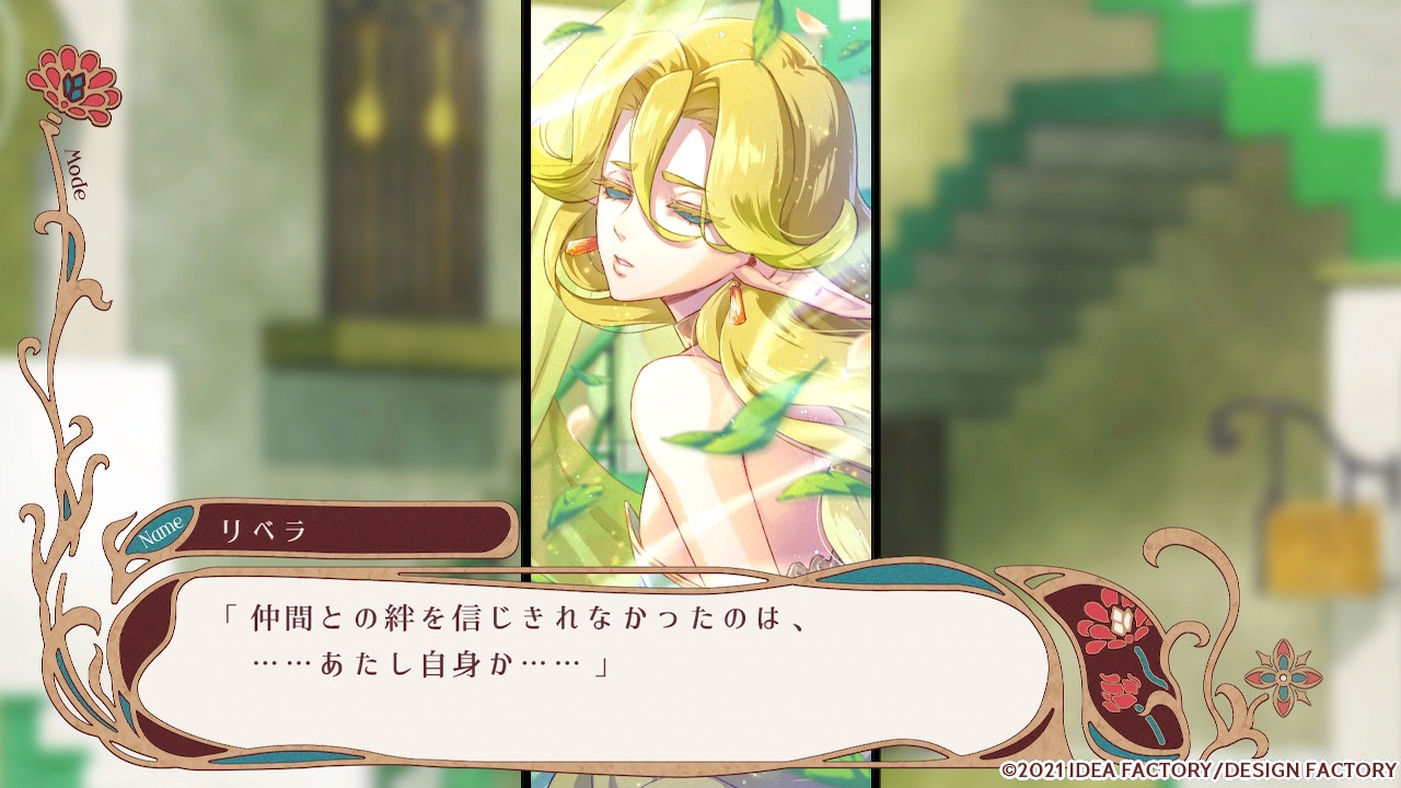 "좋아해, 비리오. .....당신을 정말 좋아해. 마물 때문에 끌어낸, 추한 말일지도 모르지만..... 하지만, 이건 전부..... 전부. 전부, 내 안에 있었던 마음. 당신을 희생한 세상 같은 건, 나는 웃는 얼굴로 있을 수 없어. 마물이 얼마나 흘러넘쳐도 돼. 세상 같은 건 멸망해도 돼."