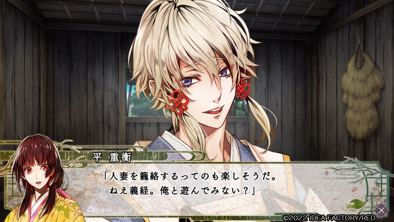 시게히라 "저 무예 바보에다 벽창호였던 노리츠네가, 제대로 여자의 상대 같은 게 가능한가 의심스럽네. 그 녀석에 만족하고 있어? 남의 아내를 농락하는 것도 즐거울 것 같아. 저기 요시츠네. 나랑 놀아보지 않을래?"