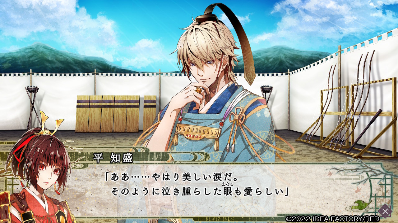 타다노부 "이 상처는, 당신이 한결같이 수행에 몰두해온 확실한 증거야. 오랑캐들과의 개척 작업에서도, 당신은 진흙투성이가 되는 것도 꺼리지 않고 누구보다도 솔선해서 일했어. 동료들을 지키기 위해 검을 휘두르고, 익숙지 않은 낫과 괭이을 쥐고...... 이 손은 언제나 누군가를 위해 열심히 했어. 이렇게 예쁜 손을, 나는 달리 알지 못 해......"