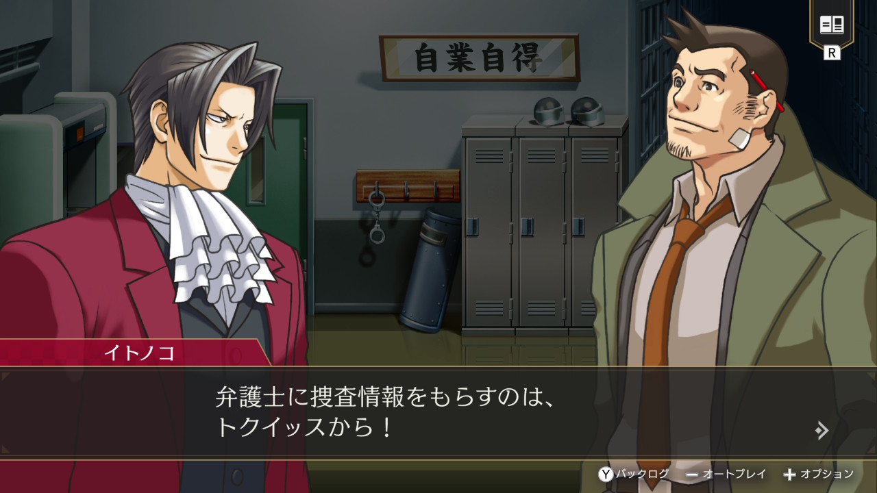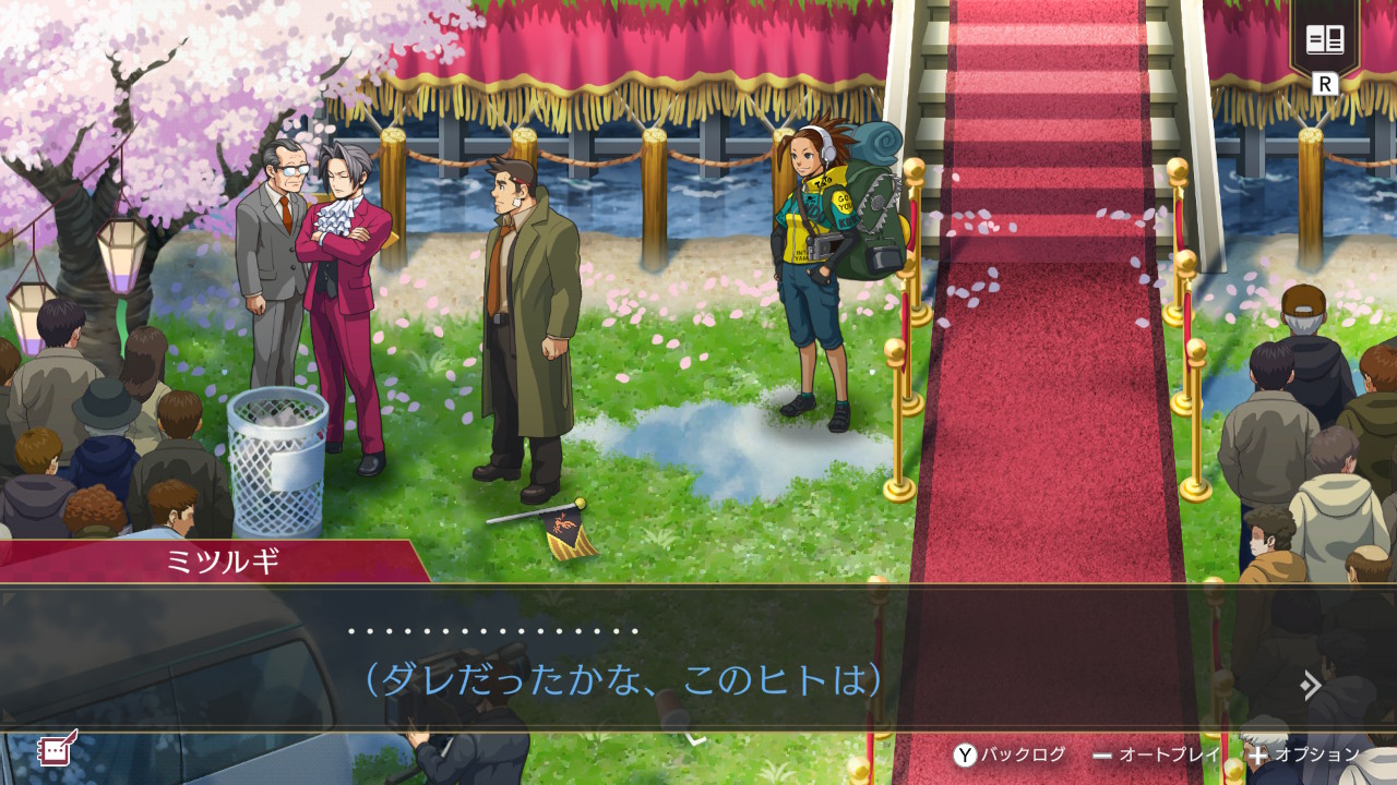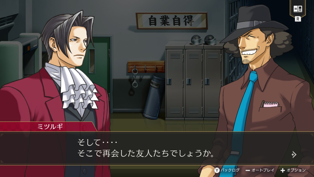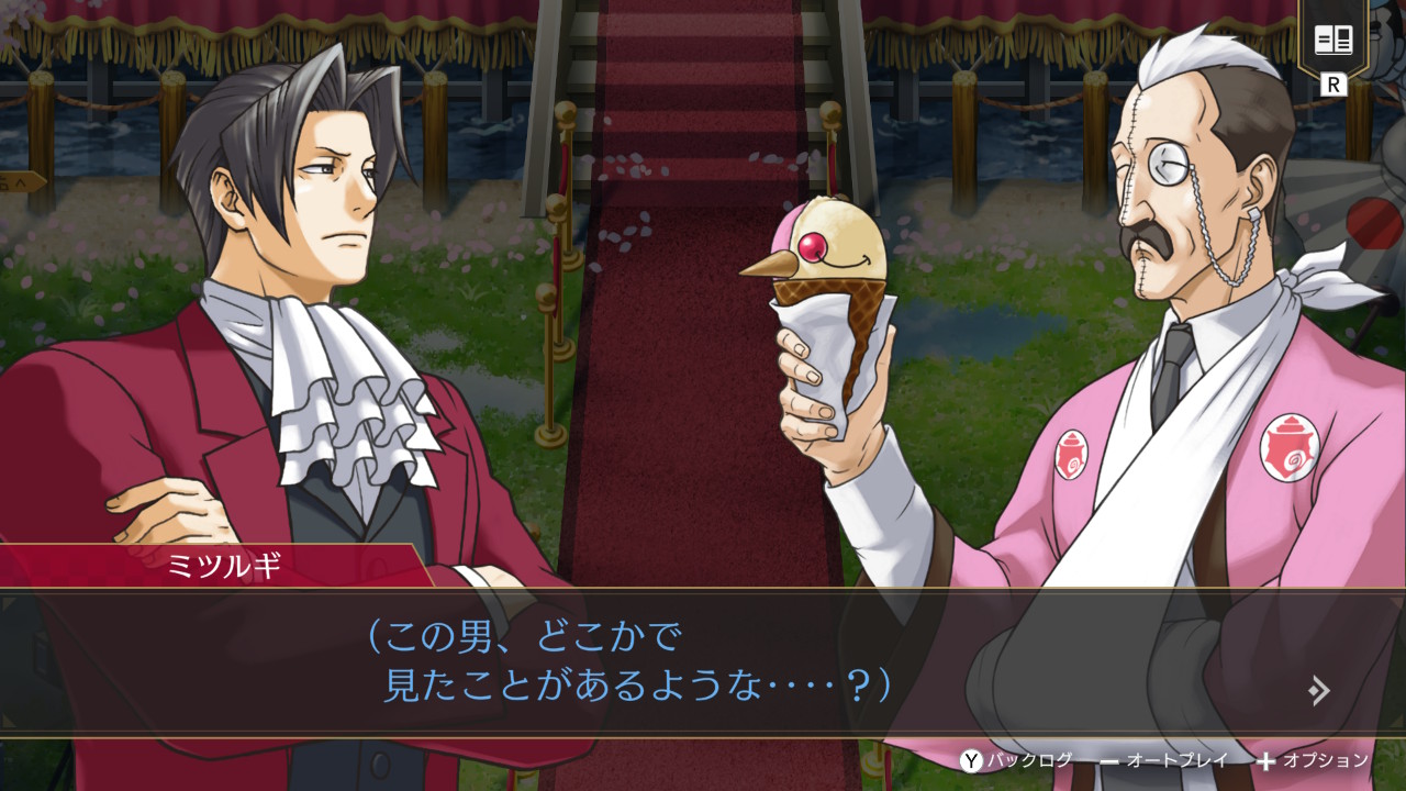 미츠루기 "이곳에서, 저는 한 번《검사 배지》를 반환했습니다. ......예전에, 어느 남자가 말했습니다. 피고인의 유일한 아군이 되어주는 것이 변호사라고. 의뢰인을 신뢰함으로써《진실》에 다가간다... 그 남자의 모습은, 제 눈에도 눈부시게 비쳤습니다. 법정에서 싸우는 아버지와, 마찬가지로..."