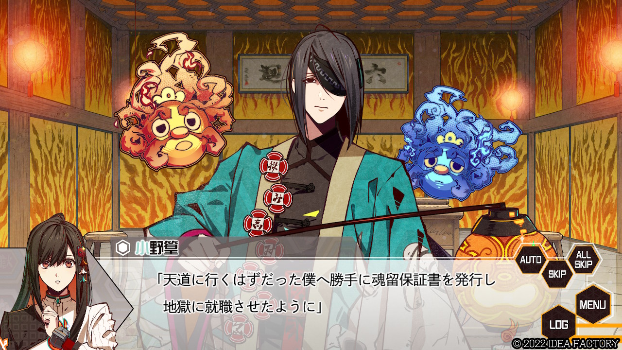 타카무라 "정말 일이 많아서 말이지...... 하나 끝났다고 생각하면 다음 두 가지가 오는 꼴이라. 그 두 가지를 힘내서 끝내면 이번에는 네 가지로 늘어나서 말이야, 일이 세포 분열할 리가 없으니까, 요컨대 만능꾼 취급이지만. 애초에, 생전부터 저는 너무 혹사당했다고요. 낮엔 조정에서 관리를 하고, 밤은 지옥에서 염마대왕의 조수를 하게 되어서. 마침내 수명을 맞이해, 사실은 천도에서 평온히 지낼 터였을 텐데, 대왕이 나의 배속처를 마음대로 결정하고 말아 근무의 계속."