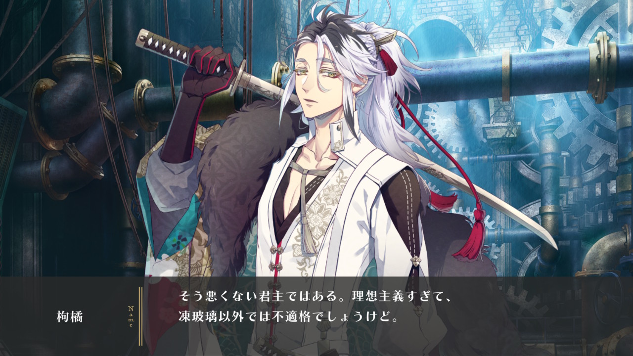 "이테하리는 정말 싫어하지만, 히이라기님은...... 그렇게 나쁘지 않은 주군이긴 해. 너무 이상주의라 이테하리 이외에서는 부적격이겠지만."