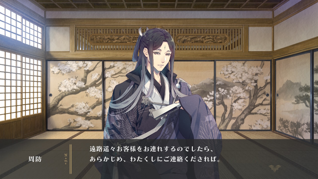 스오 "걱정에 감사드립니다. 최근 나이 때문인지, 사람의 얼굴을 기억하지 못해서. 특히....... 어디에도 있을 법한, 평범한 얼굴을 한 분은 구별이 잘 가지 않습니다. 이번엔 약속을 하지 않은 것으로 압니다. 돌아가 주십시오. 여기까지 일부러 오셔서 감사드립니다. 아주 조금이라도 따분함을 때울 도움이 되었다면 다행입니다."